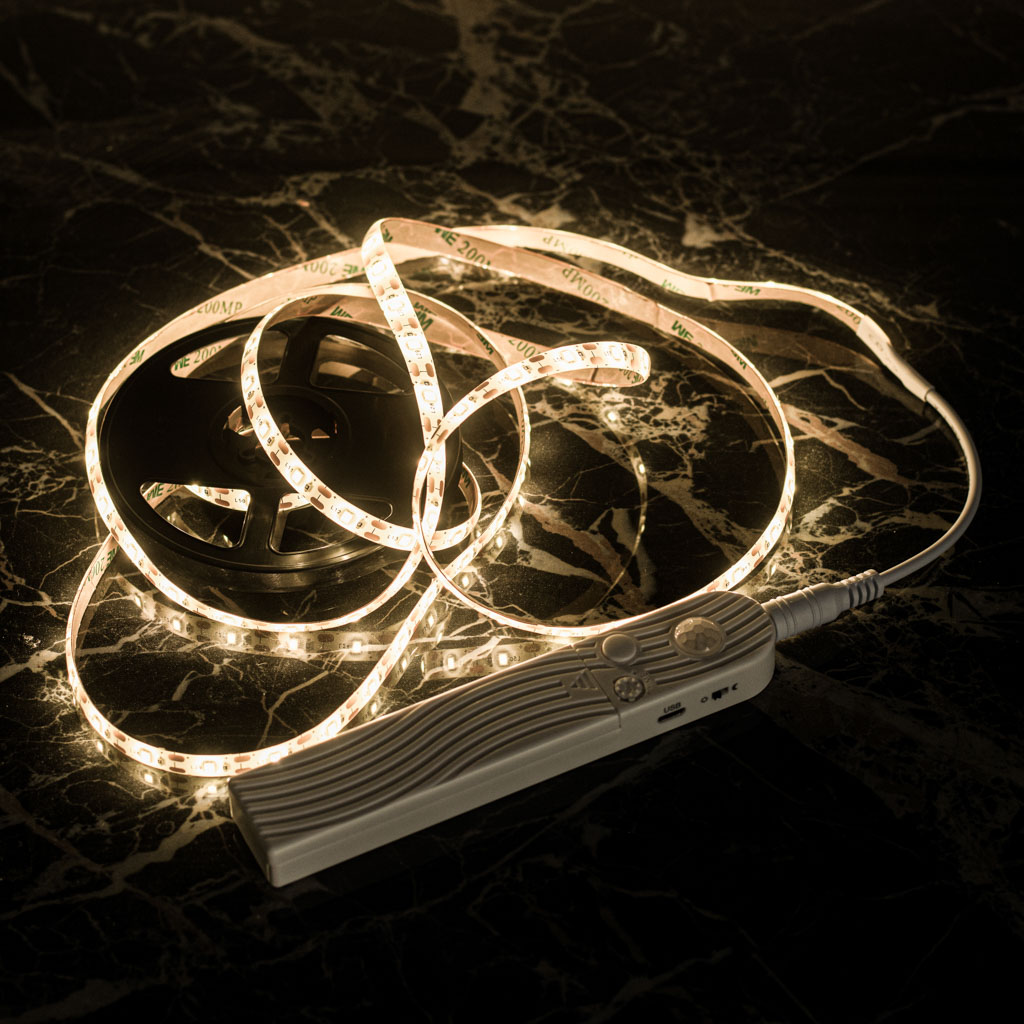 Taśma LED ma długość 2 metrów i można ją dostosować do potrzebnej długości, przecinając ją pomiędzy diodami. Posiada timer, który pozwala ustawić czas świecenia od 8 sekund do 10 minut po wykryciu ruchu. Montaż jest prosty dzięki dołączonej dwustronnej taśmie.