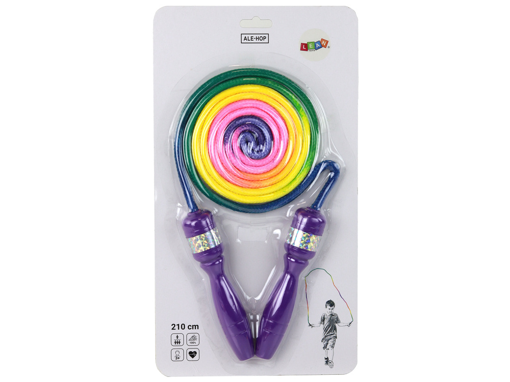 Pragniemy zaoferować Państwu niezwykłą skakankę w kolorach tęczy z fioletowymi uchwytami. Skakanka, choć jedna z najprostszych zabawek, utrzymuje swoją popularność przez dekady, ciesząc zarówno dzieci, jak i rodziców.