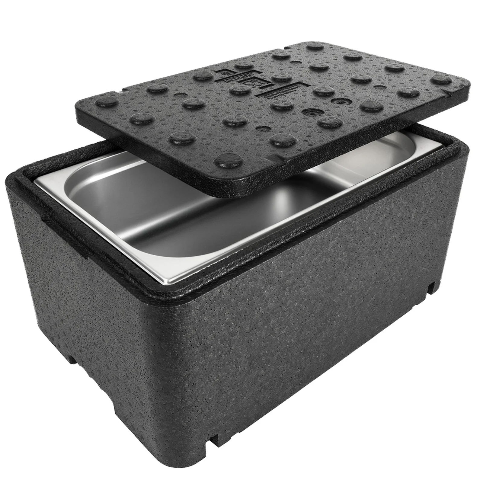 W zestawie znajduje się termobox oraz pokrywka. Należy pamiętać, że pojemnik GN widoczny na zdjęciu nie jest częścią zestawu.