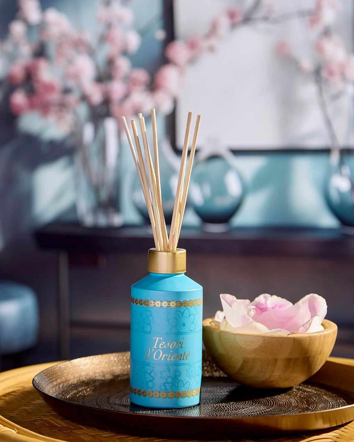 Tesori d'Oriente Ayurveda Dyfuzor Aromatyczny z Patyczkami o pojemności 200 ml to doskonały sposób na wprowadzenie przyjemnego aromatu do Twojego domu. Dzięki naturalnym patyczkom rattanowym, zapach rozprzestrzenia się równomiernie, tworząc relaksującą atmosferę w każdym pomieszczeniu.