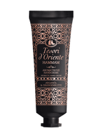 Lekka konsystencja kremu szybko się wchłania, nie pozostawiając tłustego filmu, dzięki czemu doskonale sprawdza się zarówno w domu, jak i w podróży. Krem do rąk Tesori d’Oriente Hammam wyróżnia się unikalnym, orientalnym zapachem inspirowanym tradycyjnym rytuałem Hammam – aromatycznym połączeniem olejku arganowego i kwiatu pomarańczy.