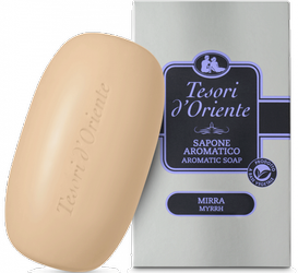 Aromatyczne mydło w kostce Tesori d'Oriente Mirra to produkt o roślinnej formule, który wzbogacony jest wyjątkowymi właściwościami regenerującymi mirry. Dzięki swojej delikatnej pianie, mydło nadaje skórze miękkość, sprawiając, że staje się ona gładka, aksamitna i pięknie pachnąca.