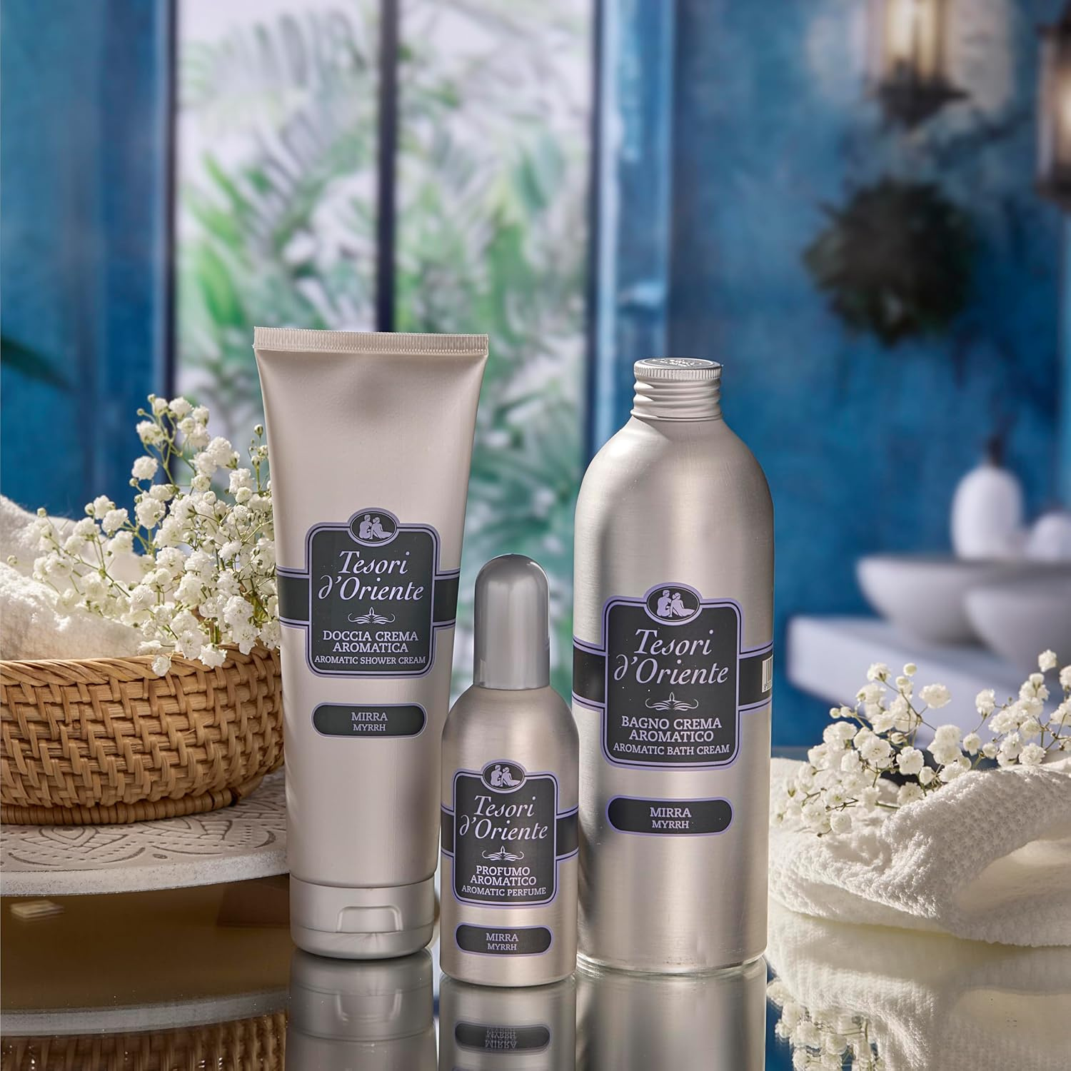 Wprowadź Tesori d'Oriente Mirra do swojej łazienki i ciesz się orientalnym luksusem podczas każdej kąpieli. Pojemność żelu wynosi 250 ml, co zapewnia długotrwałe użytkowanie.