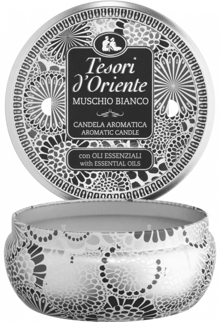 Świeca zapachowa Tesori d'Oriente Muschio Bianco o pojemności 200 g to doskonały wybór dla tych, którzy pragną wzbogacić swoje wnętrze o wyjątkowy aromat. Wykonana z wysokiej jakości wosku i naturalnych olejków eterycznych, emanuje subtelnym zapachem białego piżma, tworząc atmosferę spokoju i komfortu.