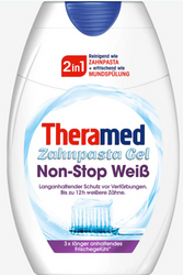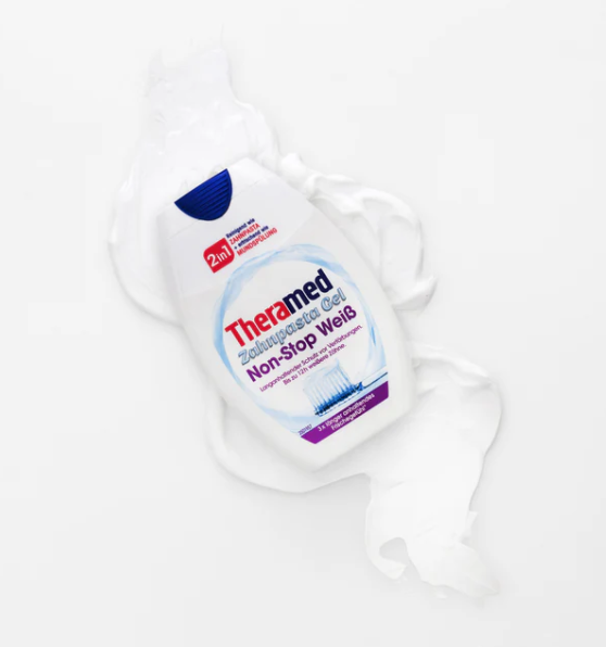 Długotrwały świeży oddech i efekt wybielenia sprawiają, że pasta Theramed Non-Stop Weiß to idealne rozwiązanie dla osób dbających o czystość i estetykę uśmiechu.