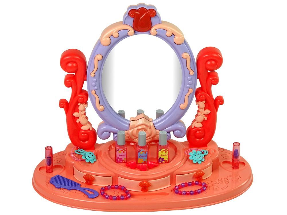 Większość dziewczynek już od najmłodszych lat chce się czuć wyjątkowo i pięknie. Często zdarza się, że nawet podkradają swoim mamom kosmetyki i biżuterię! Od dziś Twoja mała dziewczyna może malować się z mamą i uczyć się podstawowych zasad urody przy swojej pięknie zdobionej toaletce.