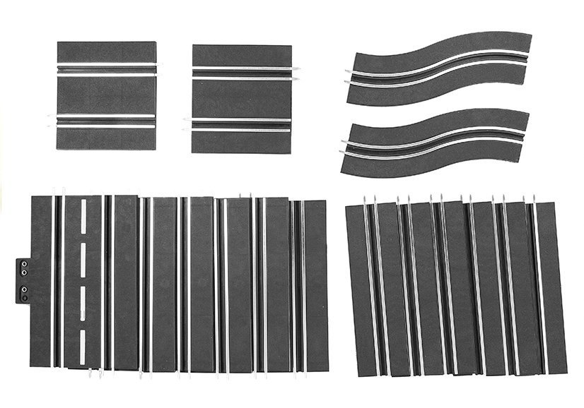 Tor samochodowy o długości 565 cm z pętlami, zasilaczem sieciowym 220 V, bandami które zabezpieczają przed wypadnięciem samochodzików. Tor wykonany jest z bardzo dobrego plastiku. Bardzo łatwy montaż jak i demontaż toru. Posiada w zestawie zasilacz, więc nie wydajesz pieniędzy na baterię. Zabawa polega na tym samym co prawdziwe wyścigi samochodowe. Musisz pierwszy przejechać jak największą ilość okrążeń i dojechać do mety. Dodatkowym elementem zabawy są 2 pętle. Na torach ostre zakręty zaznaczono żółtym kolorem, na torach są namalowane pasy - białym kolorem.