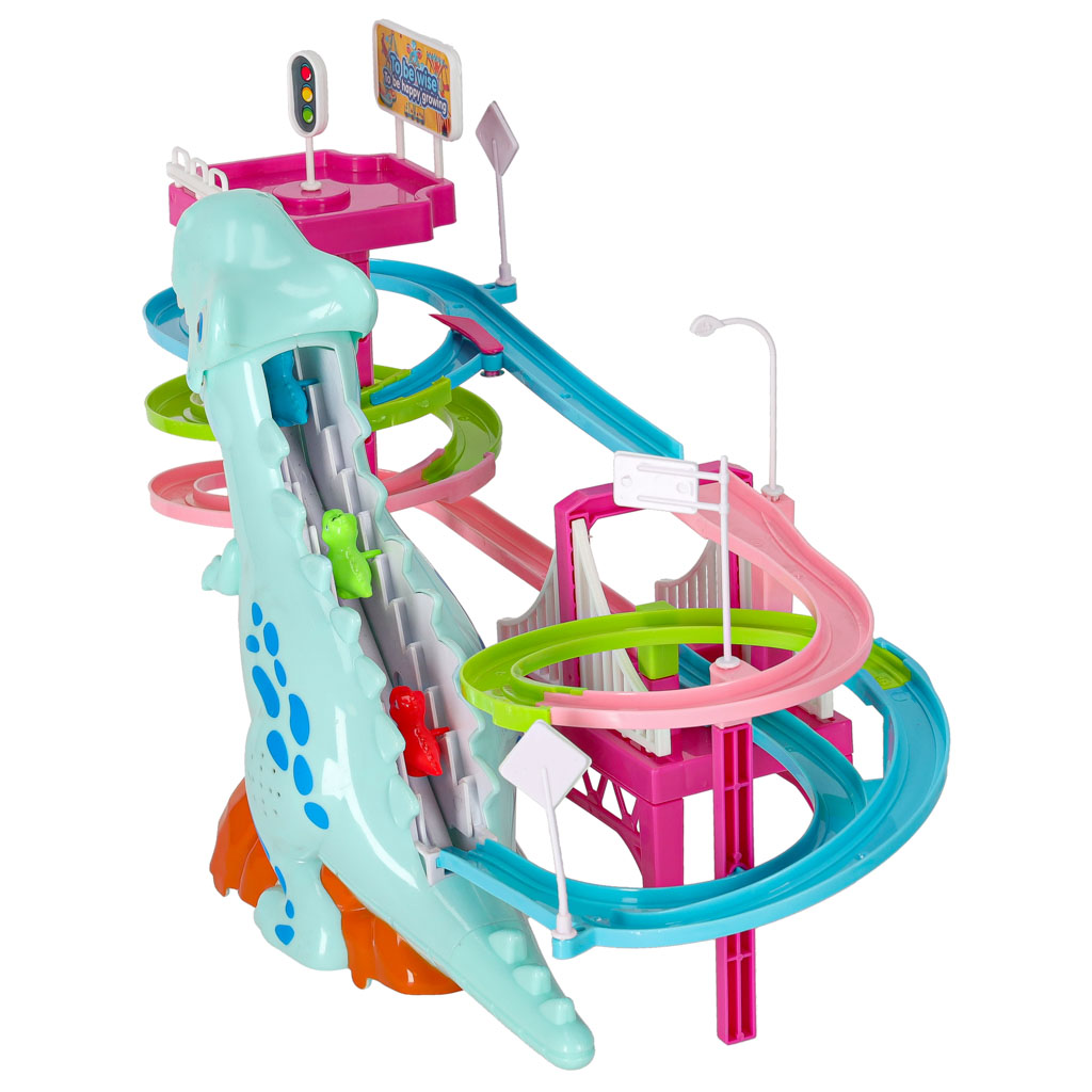 Tor wyścigowy z dinozaurem to idealna zabawa dla dzieci. Dzięki temu zestawowi, maluchy mogą cieszyć się wyścigami samochodzików w kształcie dinozaurów. To świetny sposób na rozwijanie kreatywności oraz umiejętności motorycznych.