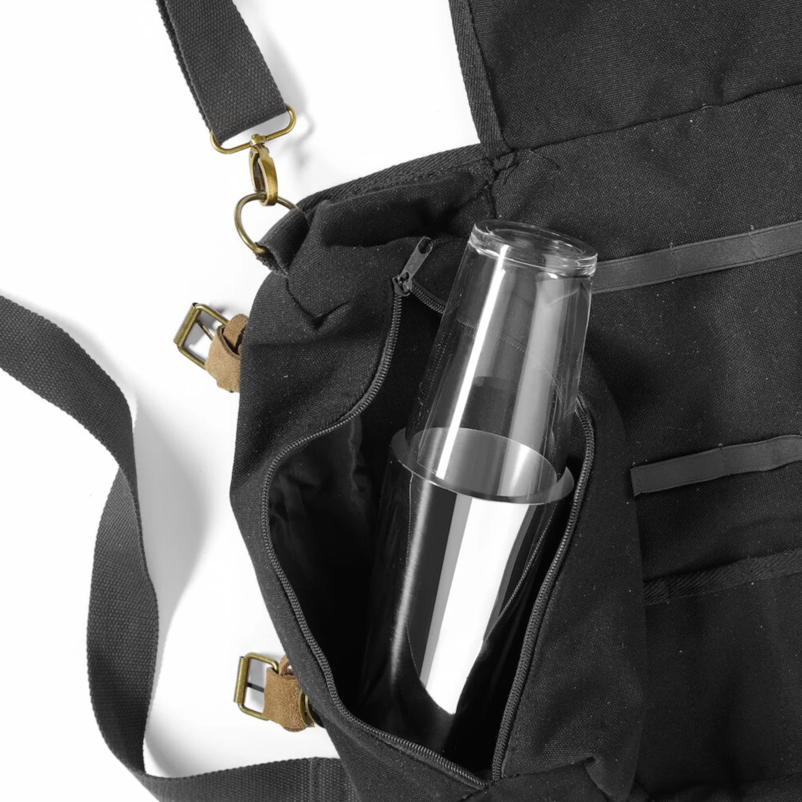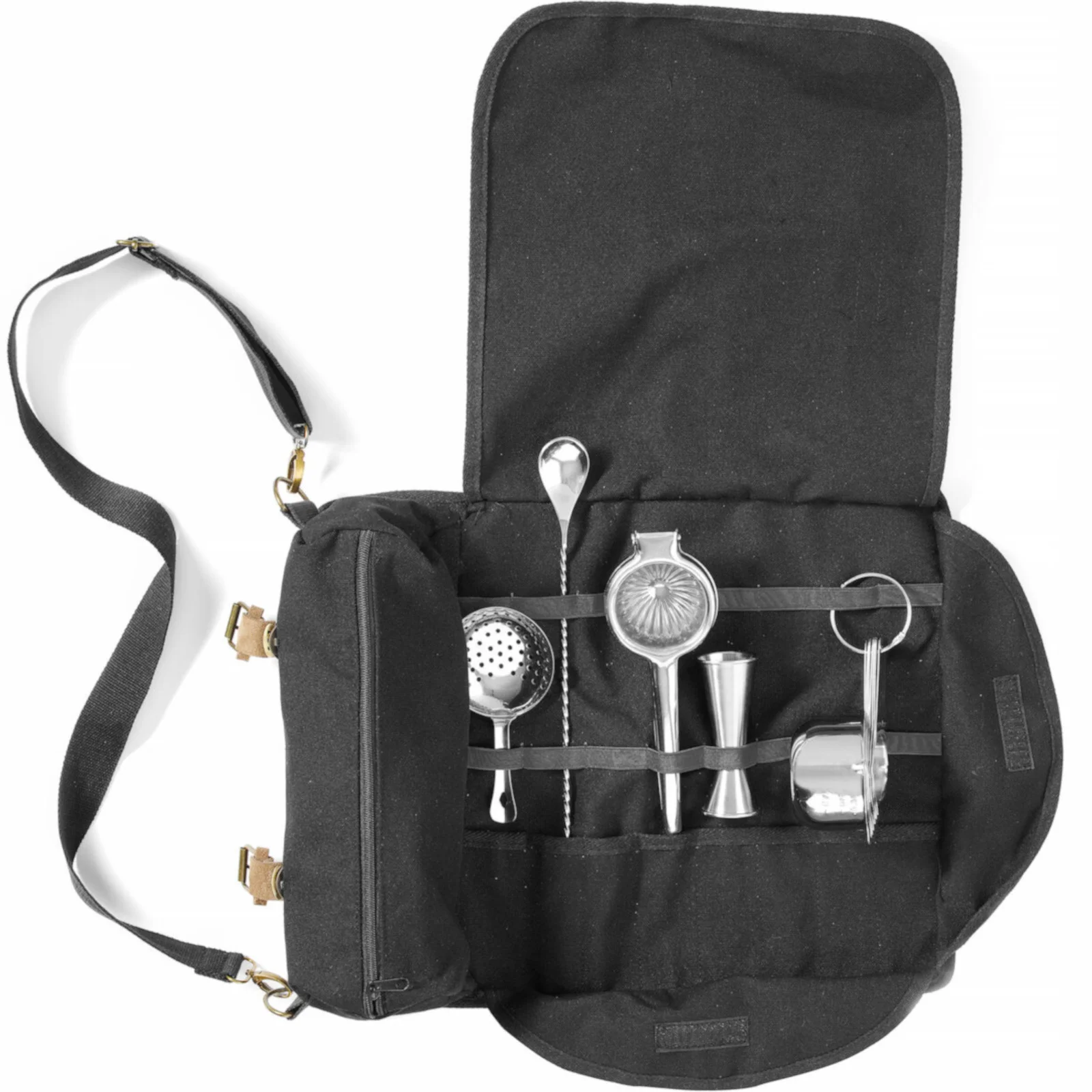 Torba posiada 8 kieszonek na akcesoria, takie jak łyżki barmańskie czy pęsety, oraz 8 elastycznych otwartych przegródek na jiggery. Dodatkowo, znajduje się w niej specjalna przegroda na shaker lub szklanicę, zapinana na zamek, co zapewnia lepszą organizację.