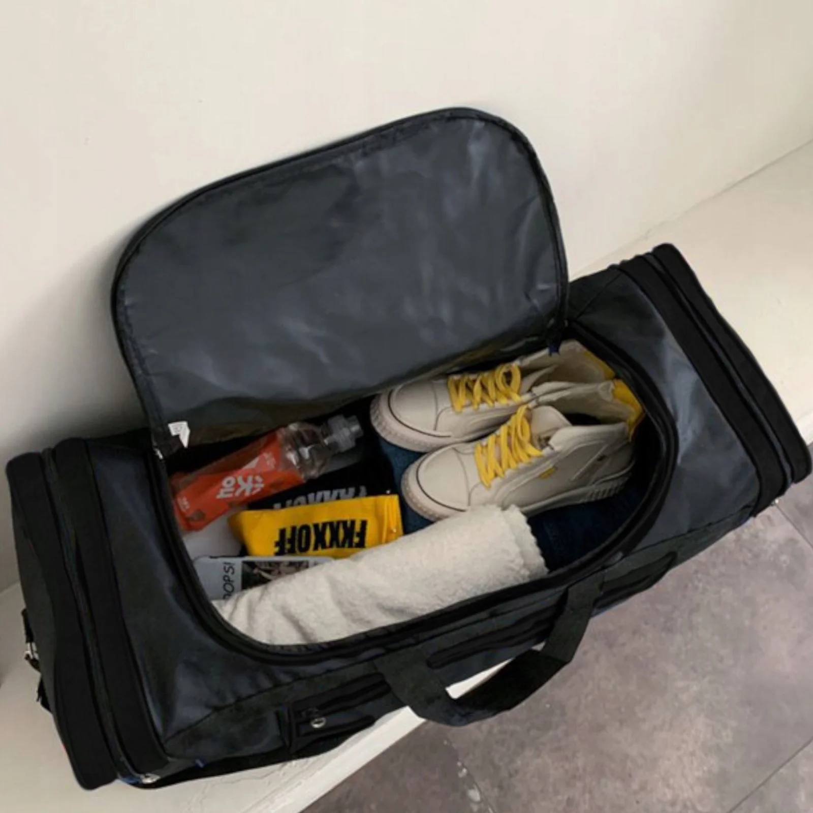 Torba podróżna sportowa na ramię - 3 kieszenie (czarna) to idealny wybór dla osób aktywnych, które cenią sobie zarówno funkcjonalność, jak i styl. Zaprojektowana z myślą o treningach i podróżach, jest doskonałym towarzyszem w każdej sytuacji.