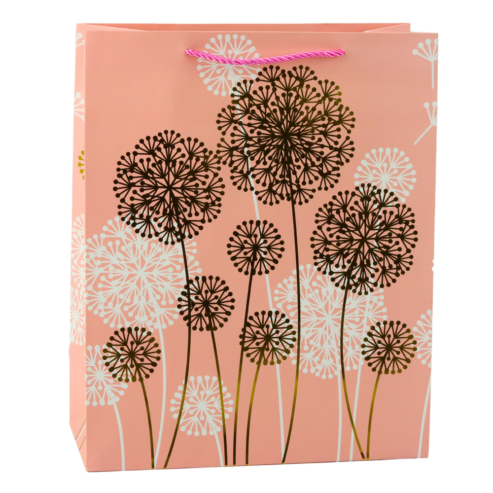 Elegancka torba prezentowa o subtelnym i naturalnym wzornictwie to doskonały wybór na każdą okazję – od urodzin i jubileuszy po śluby i spotkania rodzinne. Torba wyróżnia się pięknym motywem dmuchawców, które tworzą delikatny i harmonijny efekt. Złote i białe akcenty nadają całości luksusowego wyglądu, podkreślając wyjątkowość podarunku.