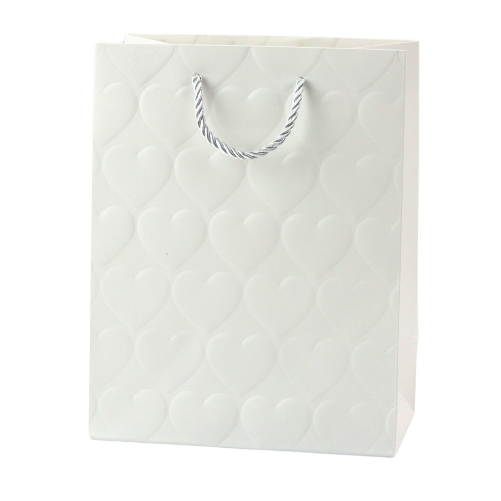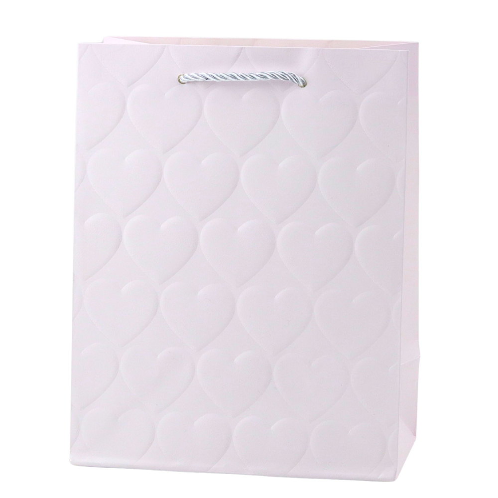 TORBA PREZENTOWA ELEGANCKA TŁOCZONE SERCA 23 x 18 x 10,5 CM