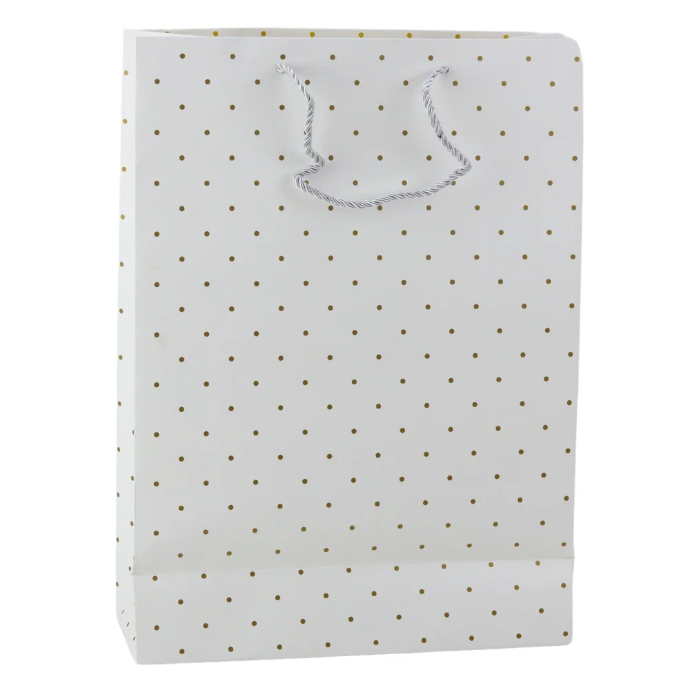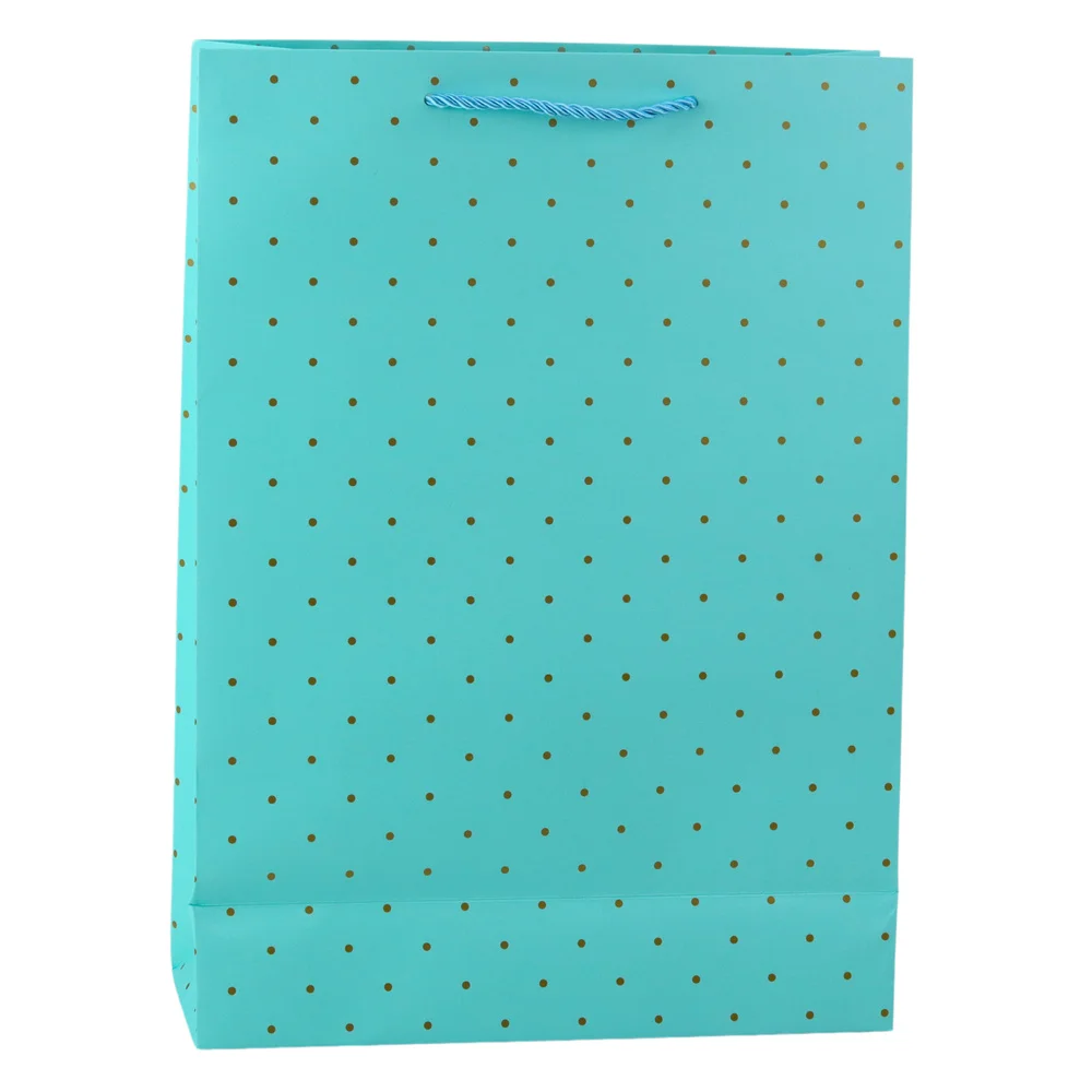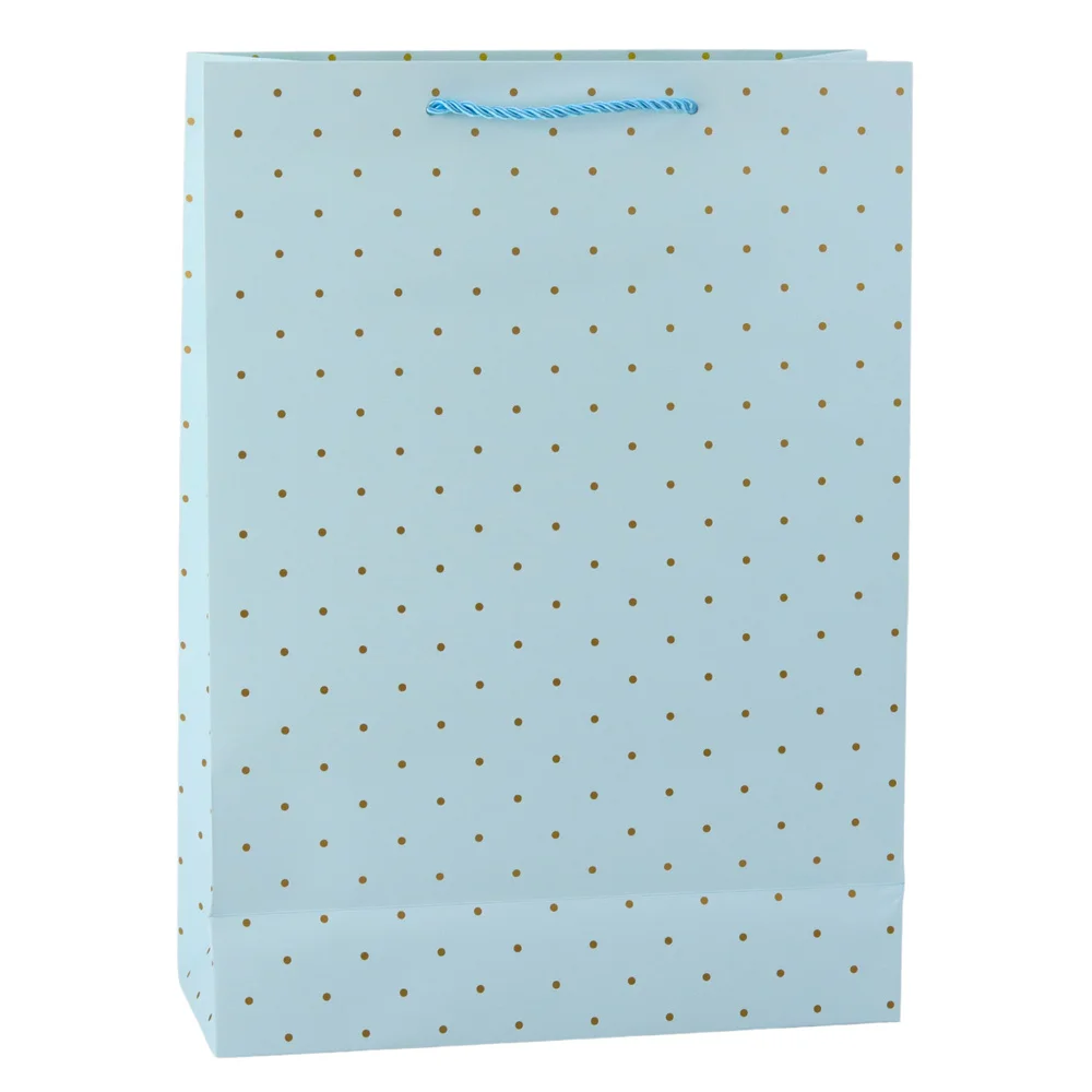 Stylowa torba prezentowa z delikatnym wzorem złotych kropeczek to idealne rozwiązanie dla osób ceniących klasykę, prostotę i elegancję. Jej uniwersalny, a zarazem subtelny design sprawia, że będzie doskonałym wyborem zarówno na formalne, jak i bardziej osobiste okazje. Torba dostępna jest w czterech pastelowych, stonowanych odcieniach – błękitnym, beżowym, białym i miętowym – które łatwo dopasować do okazji, rodzaju prezentu czy osoby obdarowywanej. Złoty, błyszczący nadruk w formie kropeczek dodaje całości szlachetnego charakteru i stanowi eleganckie uzupełnienie prostego tła.