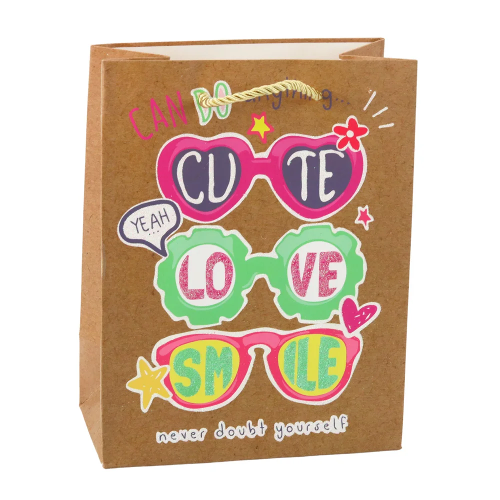 Torba wyróżnia się czterema różnorodnymi motywami. Każdy z motywów zachwyca żywą kolorystyką oraz pozytywnymi hasłami, które podkreślają młodzieżowy i optymistyczny charakter. Mocne sznurkowe uchwyty zapewniają wygodne przenoszenie i są dopasowane kolorystycznie do motywu. Torba o wymiarach 23 x 18 x 10,5 cm świetnie nadaje się do pakowania średnich i mniejszych prezentów, takich jak kosmetyki, akcesoria, książki czy słodycze.