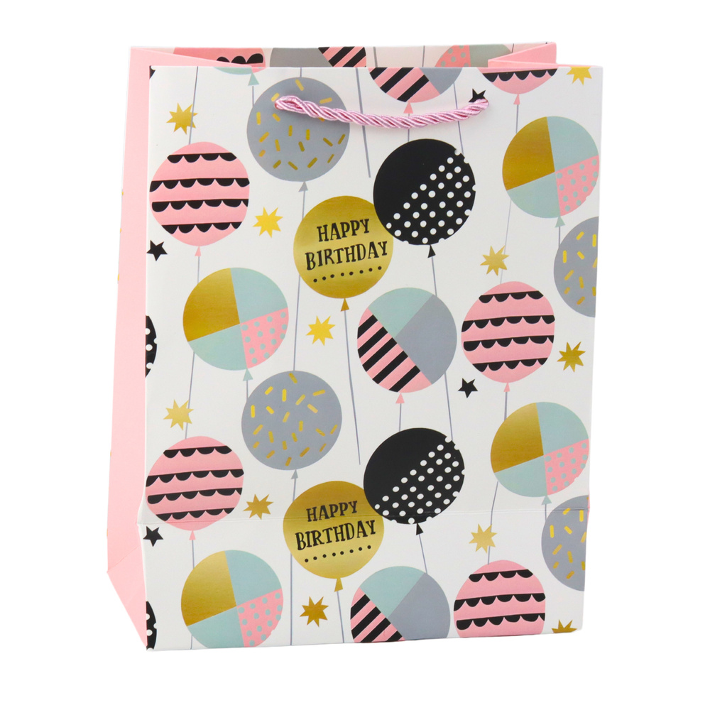 Wyjątkowe torby prezentowe w nowoczesnym i radosnym stylu to idealne opakowanie na urodzinowe prezenty. Dzięki żywym kolorom i oryginalnym wzorom każda z toreb prezentuje się efektownie i przyciąga wzrok. Każda torba posiada motyw urodzinowy z kolorowymi balonami, napisami i dynamicznymi wzorami, które podkreślają wyjątkowość okazji.