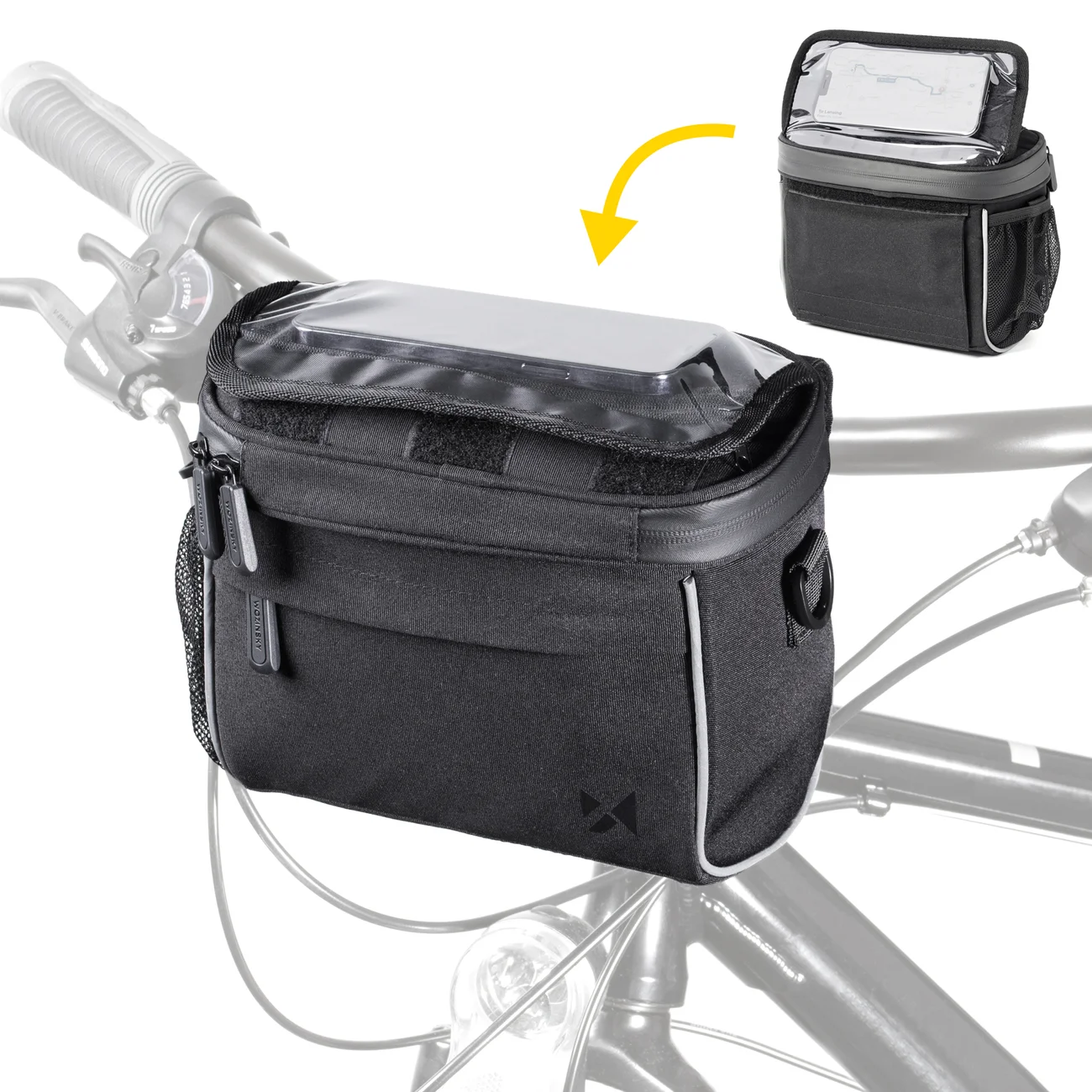 Torba została zaprojektowana z myślą o łatwym mocowaniu na kierownicy. W zestawie znajduje się mocny uchwyt, który zapewnia stabilność podczas jazdy, nawet na wymagających trasach. Długi pasek umożliwia wygodne noszenie torby na ramieniu po jej odpięciu od roweru.