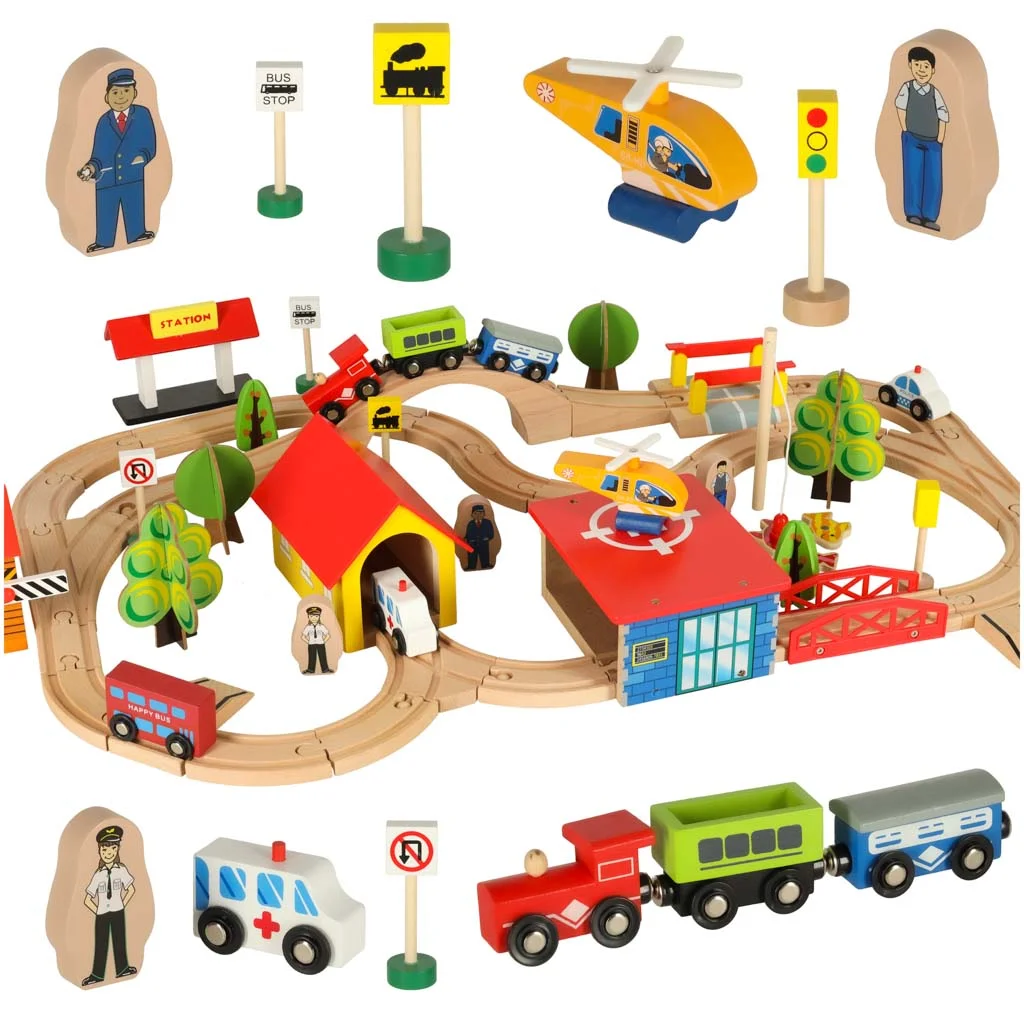 Kolejka drewniana pociąg lokomotywa miasto 69 elementów