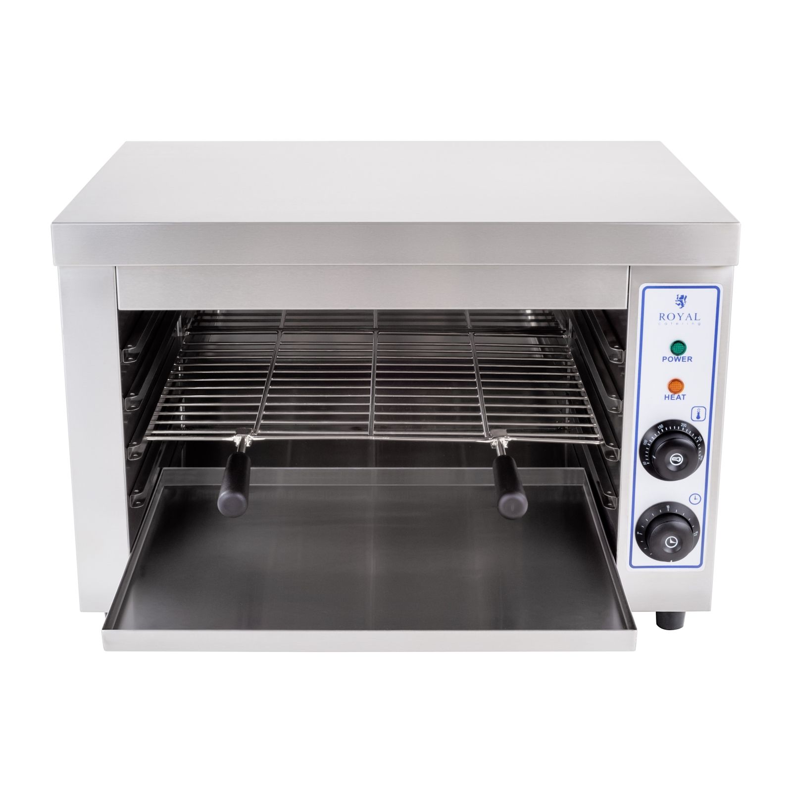 Obudowa ze stali nierdzewnej jest odporna na zabrudzenia i uszkodzenia. Dodatkowo, szuflada na okruchy ułatwia utrzymanie czystości. Chromowany ruszt o wymiarach 34,5 x 43 cm pozwala na podgrzewanie potraw o różnych rozmiarach, a regulowana wysokość kratki umożliwia dostosowanie do indywidualnych potrzeb.