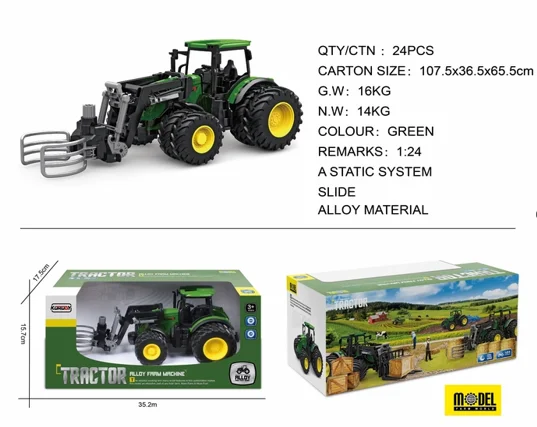 Traktor z Przyczepka Bale Siana Dźwięk Zielony
