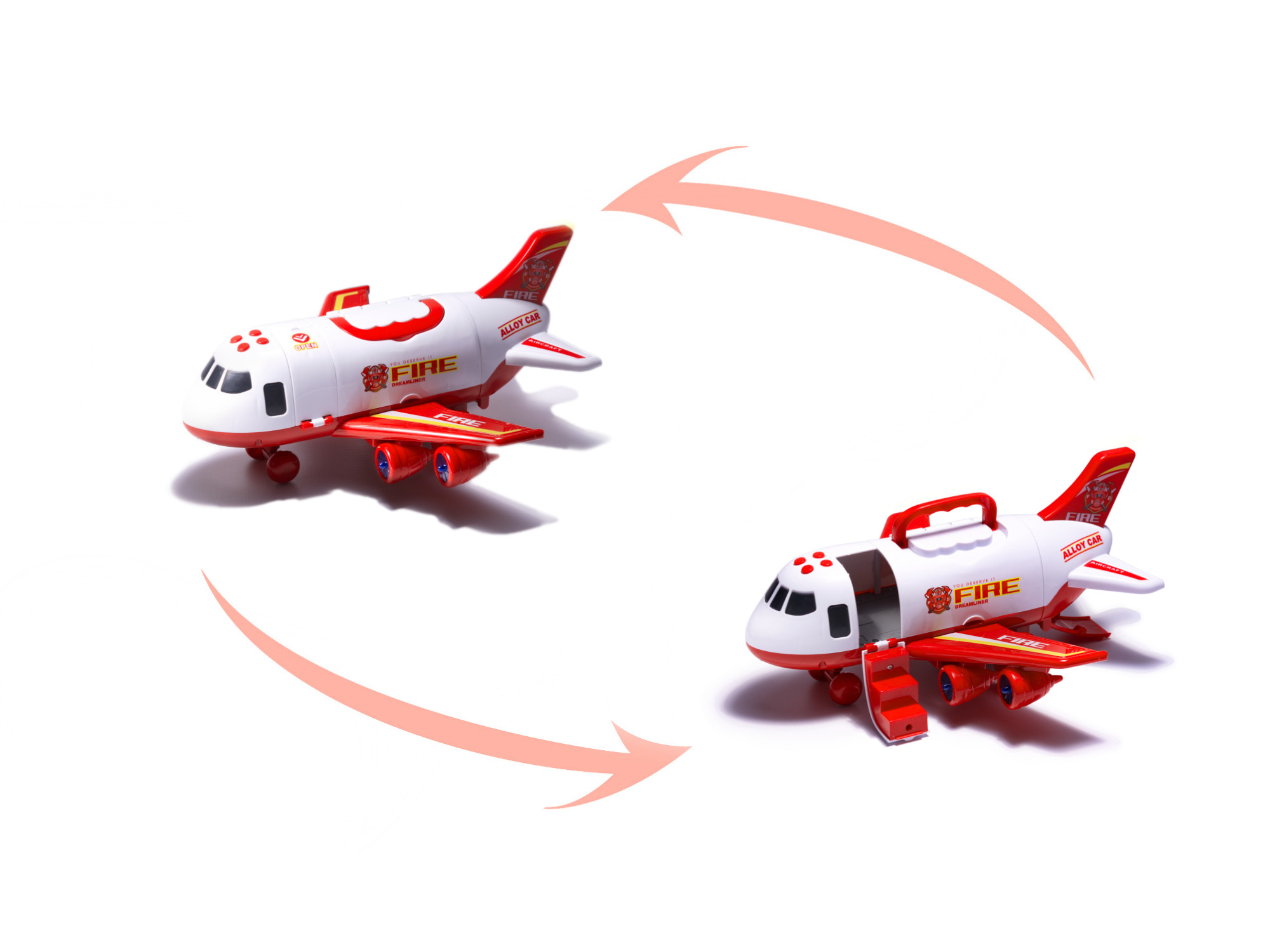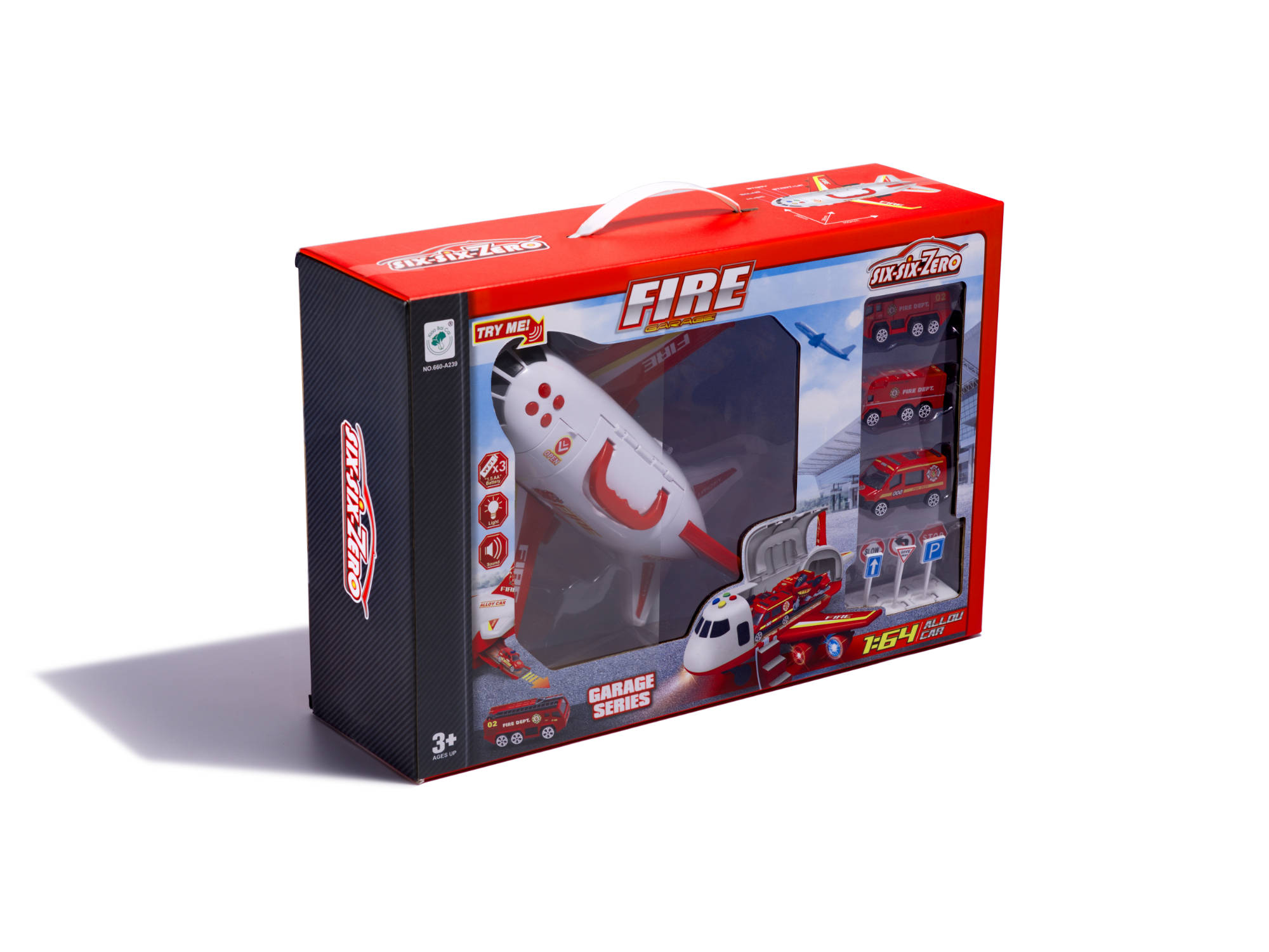 Oprócz aut, znajdziesz także zestaw 7 znaków drogowych, które można przechowywać wewnątrz samolotu. Samolot ma 4 przyciski, które odtwarzają dźwięki typowe dla służb ratunkowych oraz aktywują migające diody LED. Dzięki poręcznemu uchwytowi, transportowanie zabawki jest łatwe.