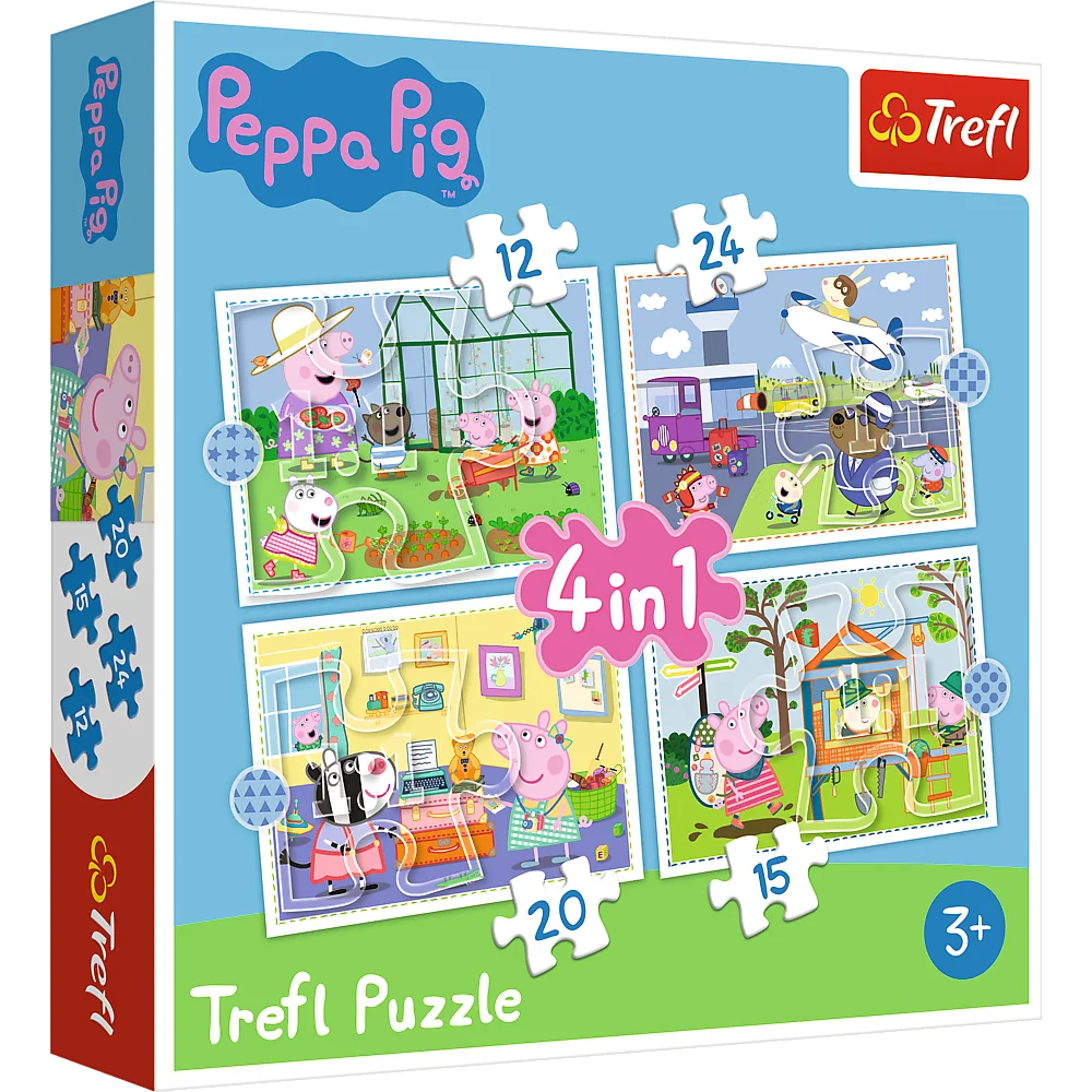 Puzzle - 4w1 (12, 15, 20, 24) - Peppa uwielbia przygody - Świnka Peppa - Trefl 34672