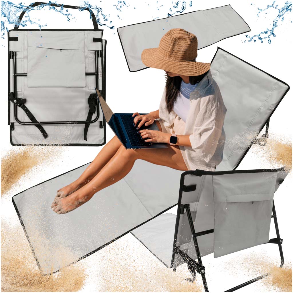 Mata plażowa składana z oparciem leżak składany 2w1 szary torba