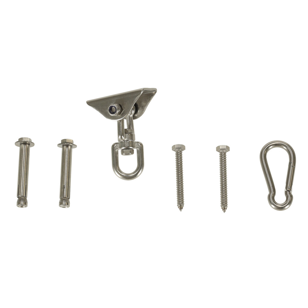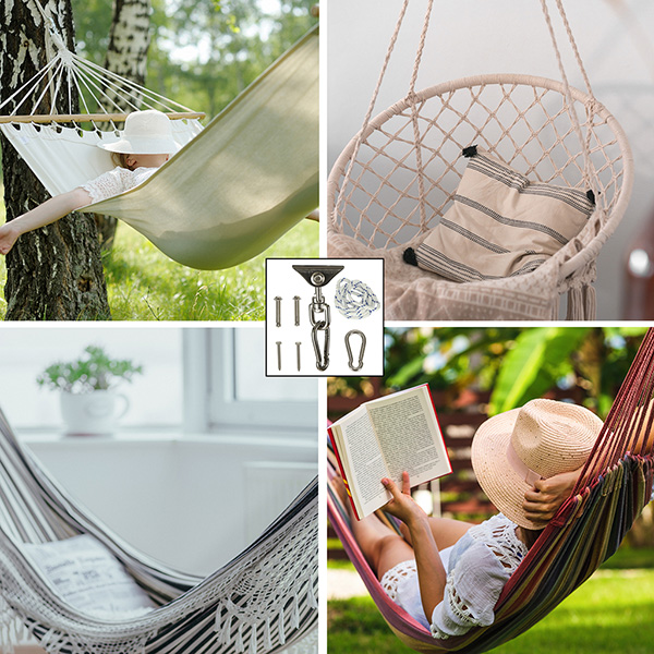 Oferujemy kompletny zestaw do zawieszenia hamaka, który zapewni Ci komfortowy relaks na świeżym powietrzu. Dzięki naszemu uchwytowi, zawieszenie hamaka, bocianiego gniazda czy huśtawki stanie się proste i szybkie.