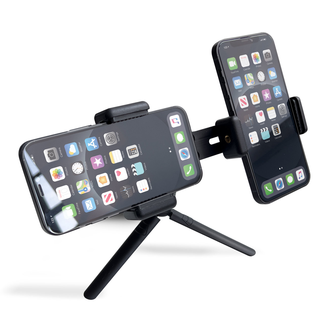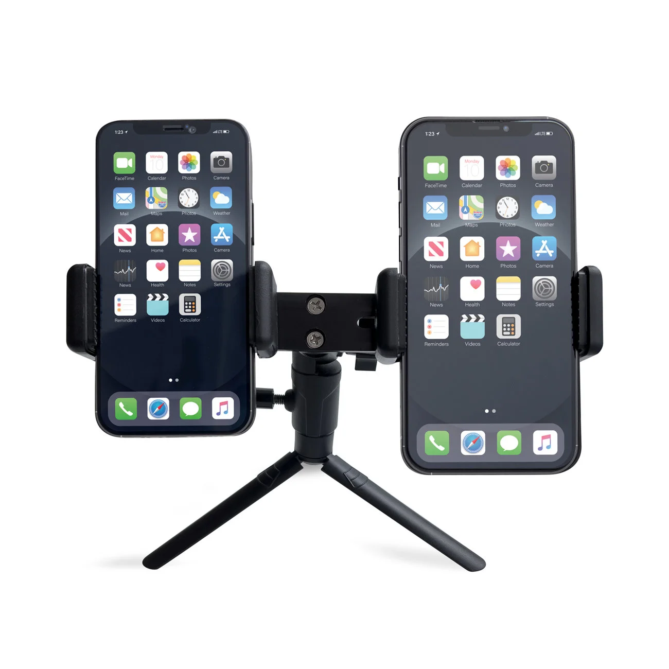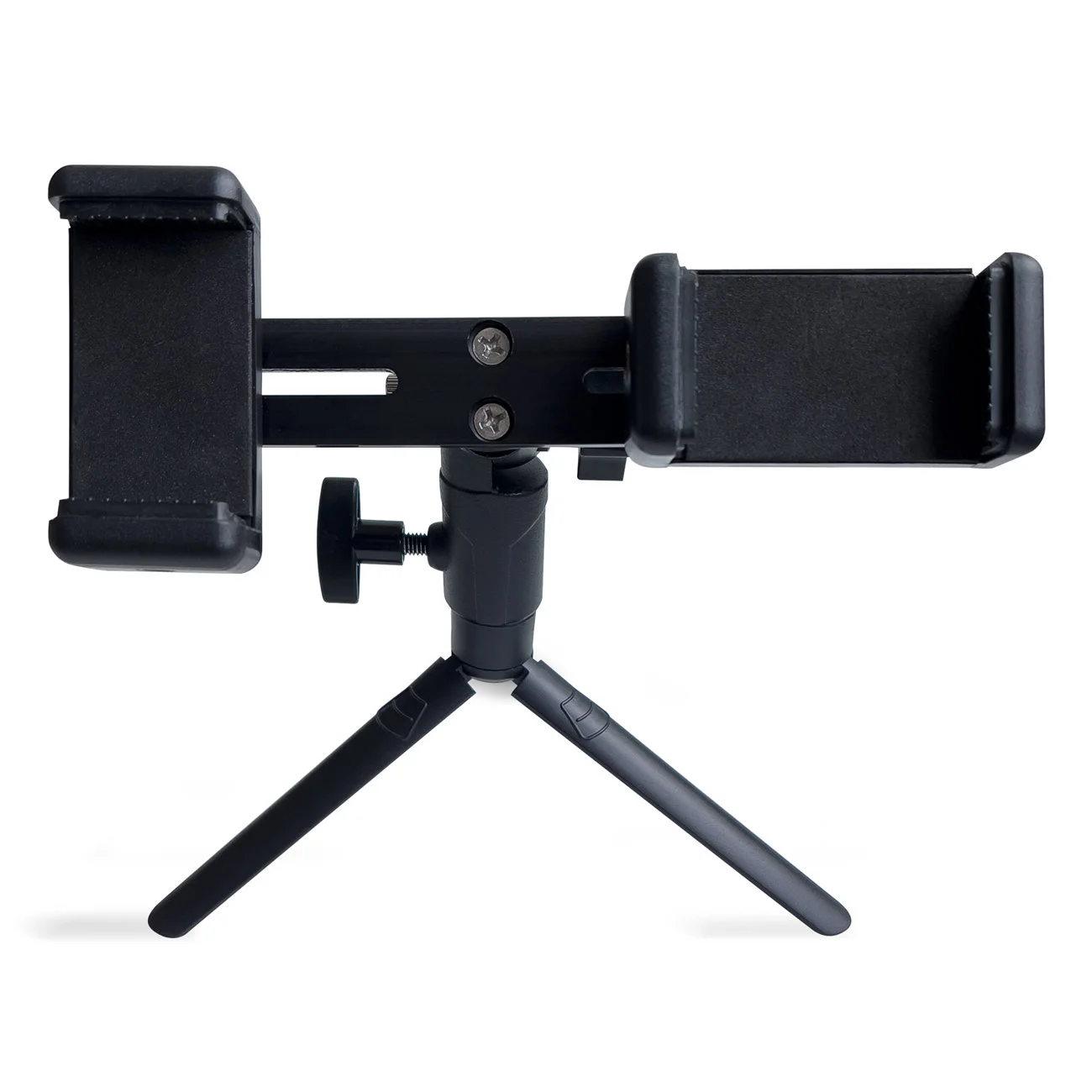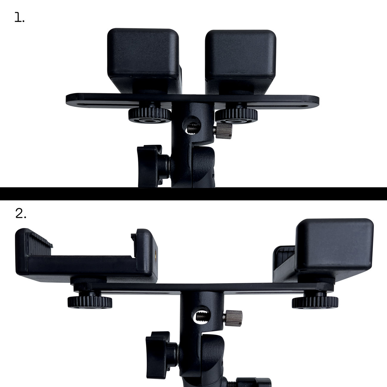 Uchwyt pozwala na prostą regulację w zakresie 180 stopni, co ułatwia ustawienie idealnego kąta do grania, oglądania czy nagrywania. Dzięki możliwości dostosowania odległości między uchwytami, możesz swobodnie umieścić w nich urządzenia bez obaw o ich wypadnięcie.