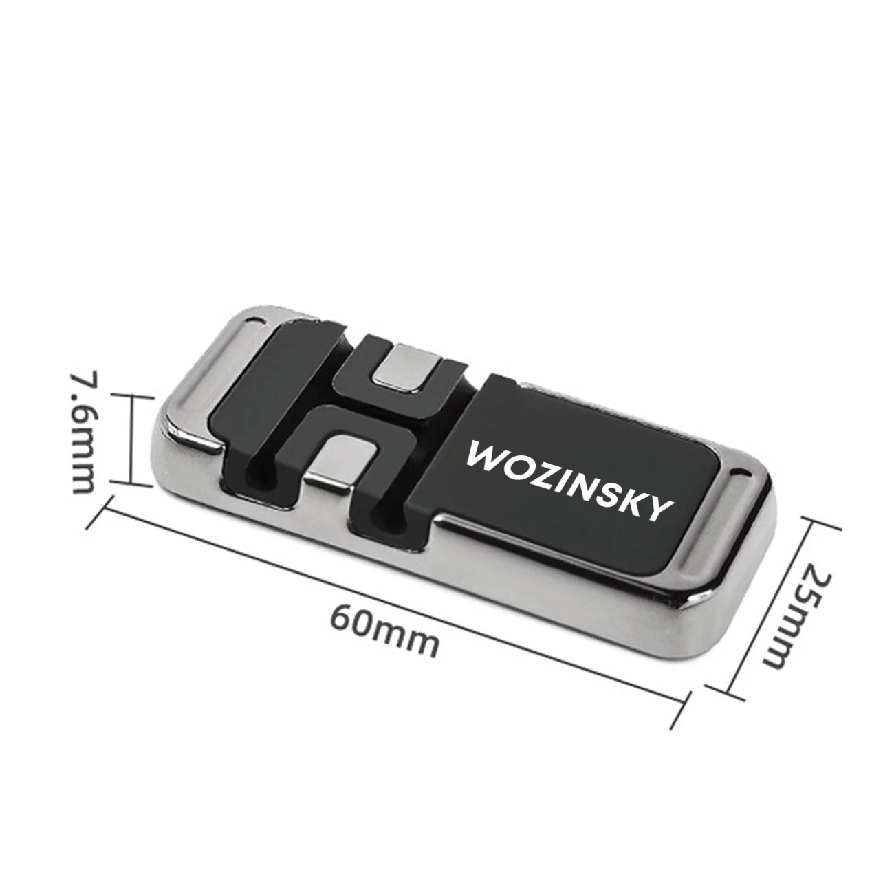 Uchwyt pełni podwójną funkcję: może być używany jako uchwyt na telefon oraz organizer na kable. Montaż jest prosty i szybki — wystarczy odkleić warstwę samoprzylepną i umieścić go na płaskiej powierzchni, takiej jak deska rozdzielcza, biurko lub ściana.