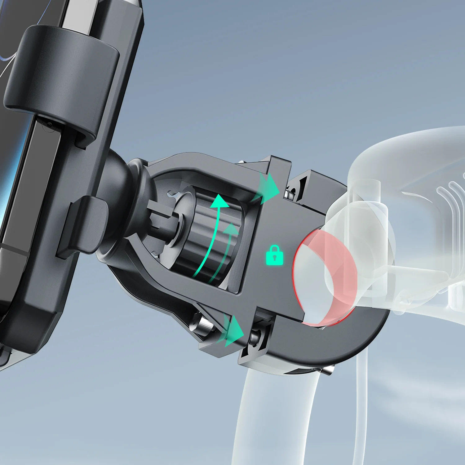 Uchwyt motocyklowy i rowerowy to praktyczne akcesorium, które zapewnia wygodę i bezpieczeństwo podczas jazdy. Dzięki niemu masz pełną widoczność drogi, co zwiększa komfort podróży. Przegub kulowy umożliwia łatwe ustawienie telefonu, aby był zawsze w zasięgu wzroku.