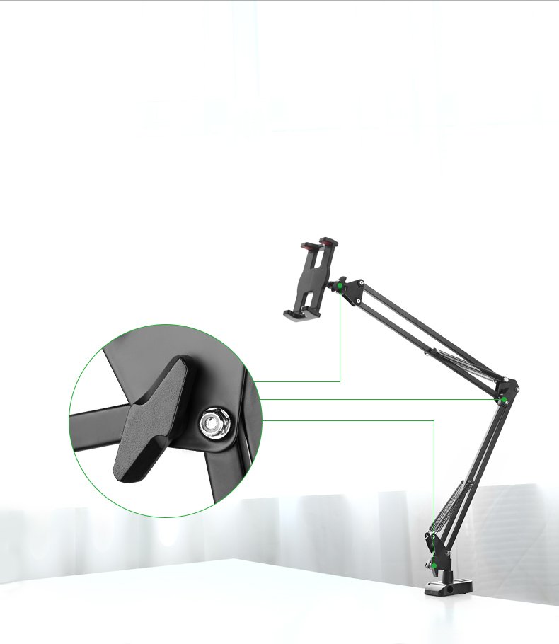 Zestaw zawiera: uchwyt statyw składane ramię do biurka stołu na telefon tablet.