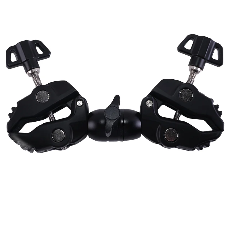 Dwustronny uchwyt typu "crab clip" to funkcjonalne narzędzie dla fotografów, które znacząco ułatwia pracę w studiu. Dzięki mocnemu zaciskowi z gumową matą antypoślizgową, uchwyt zapewnia stabilność oraz pełną kontrolę nad oświetleniem i kompozycją zdjęć. Możliwość regulacji kąta o 360 stopni pozwala na idealne ustawienie akcesoriów.