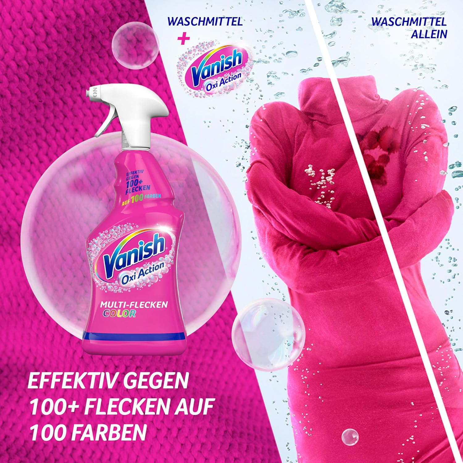 Vanish Oxi-Action Color to odplamiacz w sprayu o pojemności 750 ml, który skutecznie usuwa nawet najtrudniejsze plamy. Dzięki aktywnemu tlenowi, radzi sobie z zabrudzeniami z tłuszczu, trawy, jagód czy czekolady, zapewniając czystość tkanin.