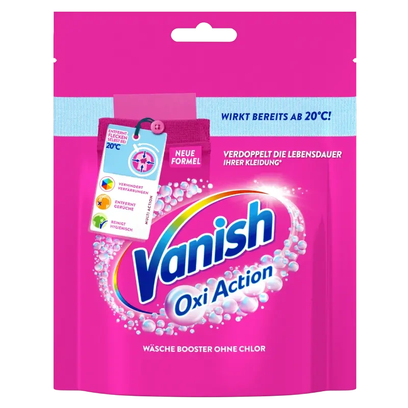 Vanish Oxi Action Pink to niezwykle skuteczny booster prania, który nie zawiera chloru. Dzięki wyjątkowej formule Oxi Action, doskonale radzi sobie z usuwaniem plam, zapobiega powstawaniu przebarwień oraz eliminuje nieprzyjemne zapachy.