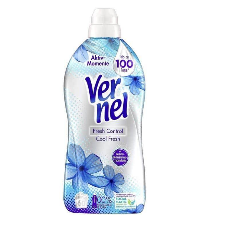 Odkryj świeżość i miękkość prania dzięki Vernel Fresh Control Cool Fresh. Ten płyn do płukania zapewnia uczucie świeżo upranego przez nawet 140 dni. Dzięki innowacyjnej technologii podwójnej kapsułki, świeże perełki uwalniają zapach podczas ruchu, co sprawia, że Twoje ubrania pachną jak tuż po praniu.