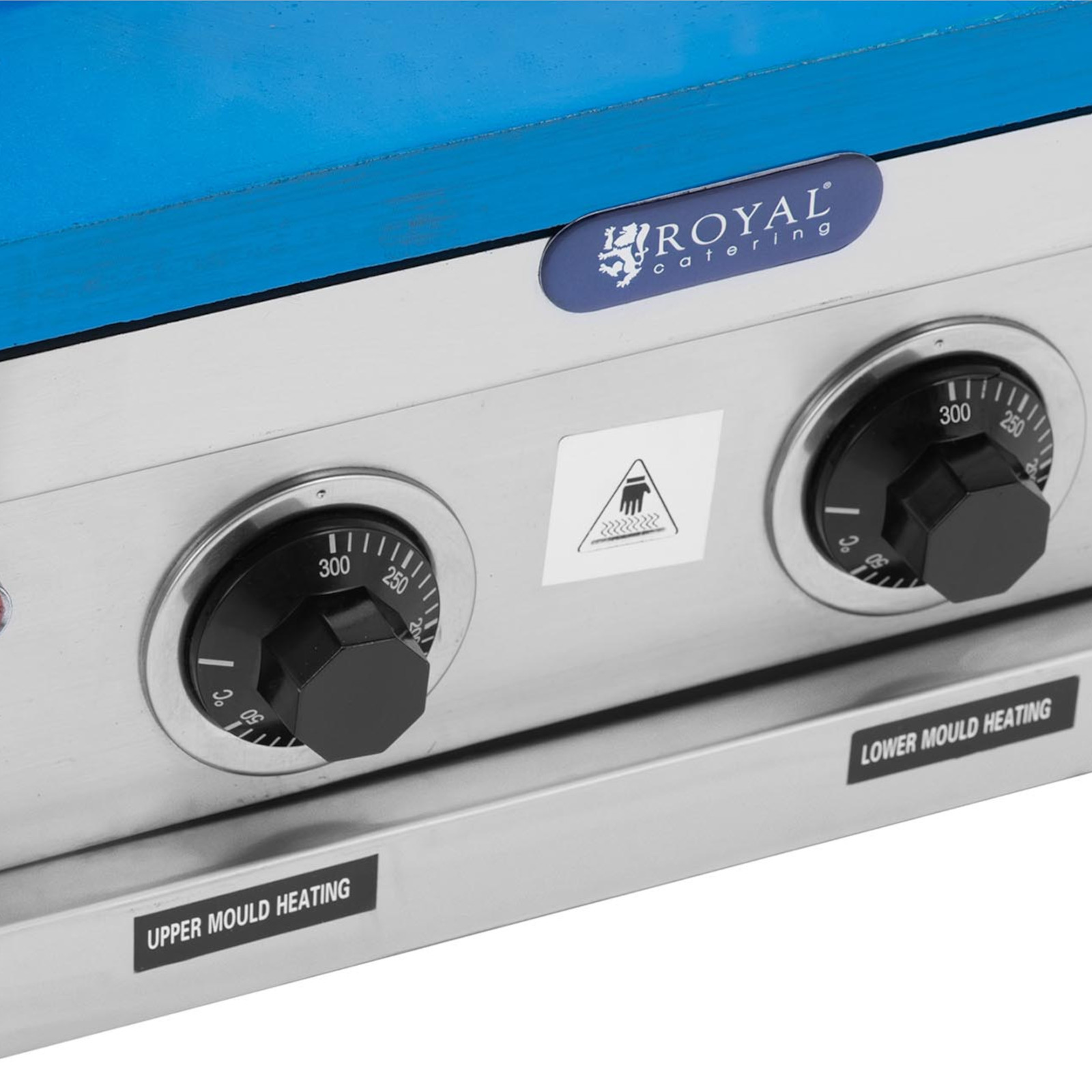 Waflownica marki Royal Catering to doskonałe rozwiązanie dla miłośników wafli. Dzięki mocy 4200 W, urządzenie pozwala na wypiekanie 100-120 wafli na godzinę. Obsługa jest niezwykle prosta. Użytkownik może oddzielnie ustawić temperaturę dla górnej i dolnej płyty pieczenia. Wystarczy wypełnić foremki ciastem i docisnąć górną część za pomocą dźwigni.