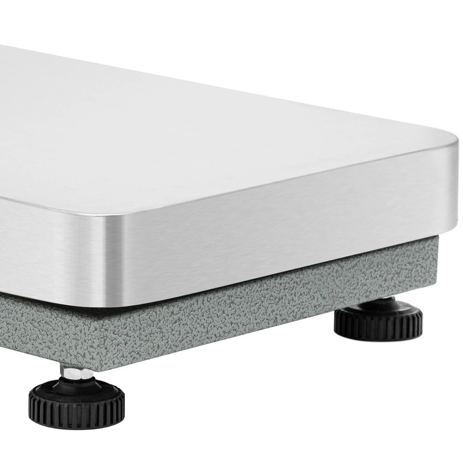 Stabilna obudowa chroni urządzenie przed wibracjami oraz wpływem czynników zewnętrznych. Powierzchnia ważąca o wymiarach 300 x 400 mm pozwala na ważenie większych przedmiotów, a cztery nóżki zapewniają stabilność podczas użytkowania.