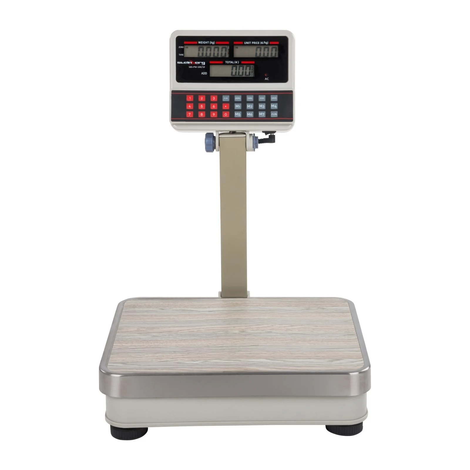 Odczyty z wagi są wyraźnie widoczne na sześciu wyświetlaczach LCD, co ułatwia pracę zarówno sprzedawcy, jak i klienta. Klawiatura numeryczna jest odporna na wodę, smar i tłuszcz, co ułatwia utrzymanie urządzenia w czystości. Ponadto, waga oferuje funkcję sumowania cen oraz możliwość programowania cen, co zwiększa jej użyteczność.