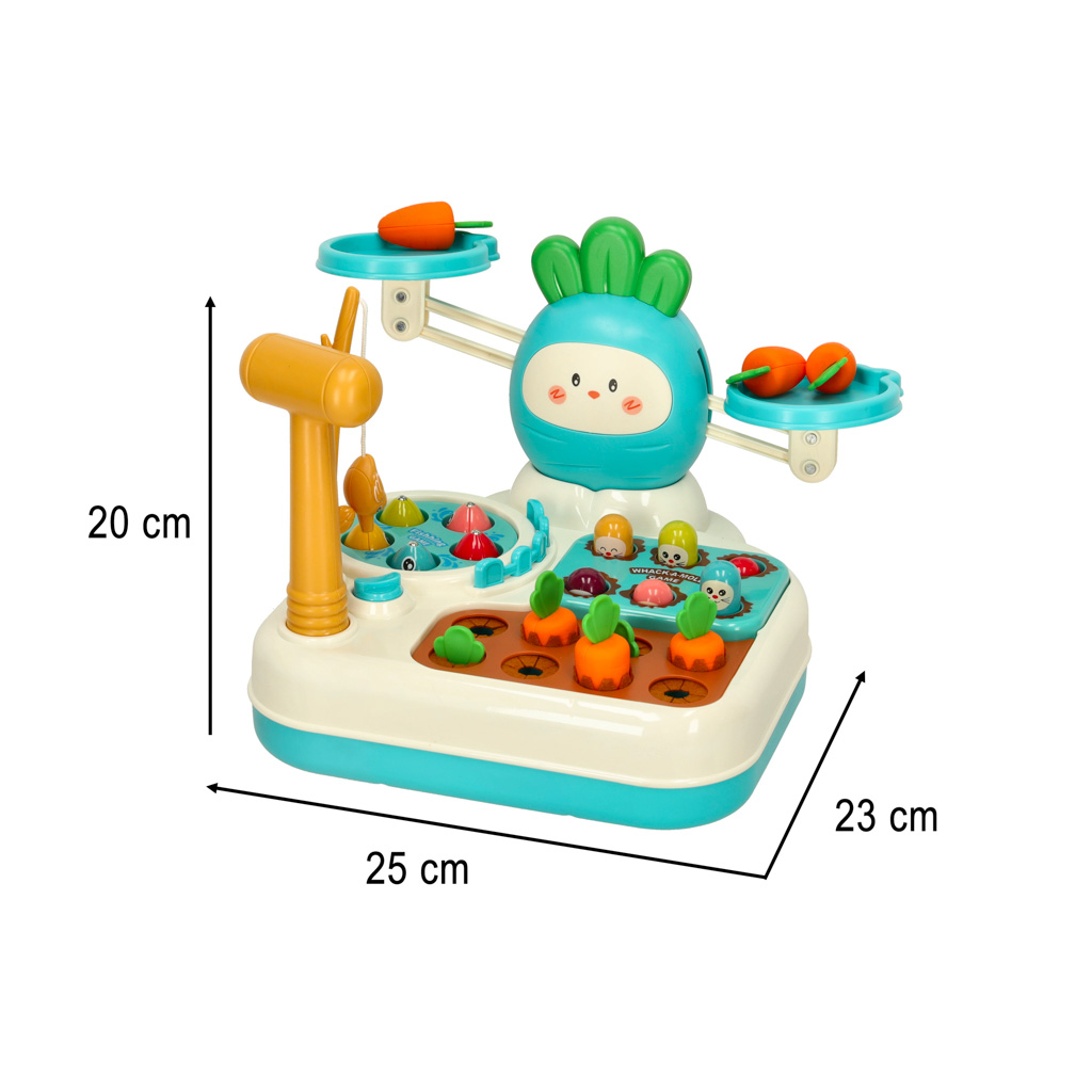 Odkryj radość z nauki przez zabawę! Niebieska waga szalkowa to doskonały sposób na rozwijanie umiejętności Twojego dziecka. Dzięki różnorodności gier, takich jak łowienie rybek, uderzanie w kreta, zbieranie marchewek i balansowanie wagą, zapewniasz maluchowi godziny kreatywnej zabawy.