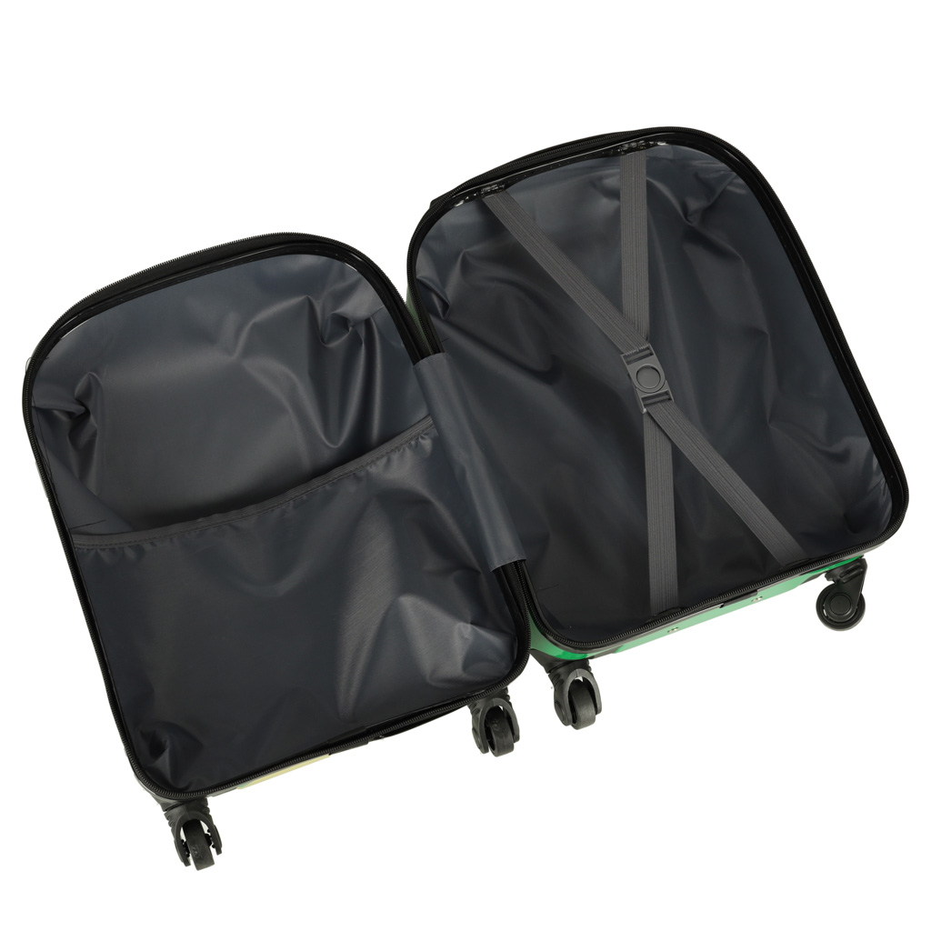 Walizka oferuje dużą pojemność, co pozwala na spakowanie wszystkich niezbędnych rzeczy oraz ulubionych zabawek. Wnętrze składa się z dwóch komór – jednej kieszonkowej oraz drugiej z pasami zabezpieczającymi, co ułatwia organizację.