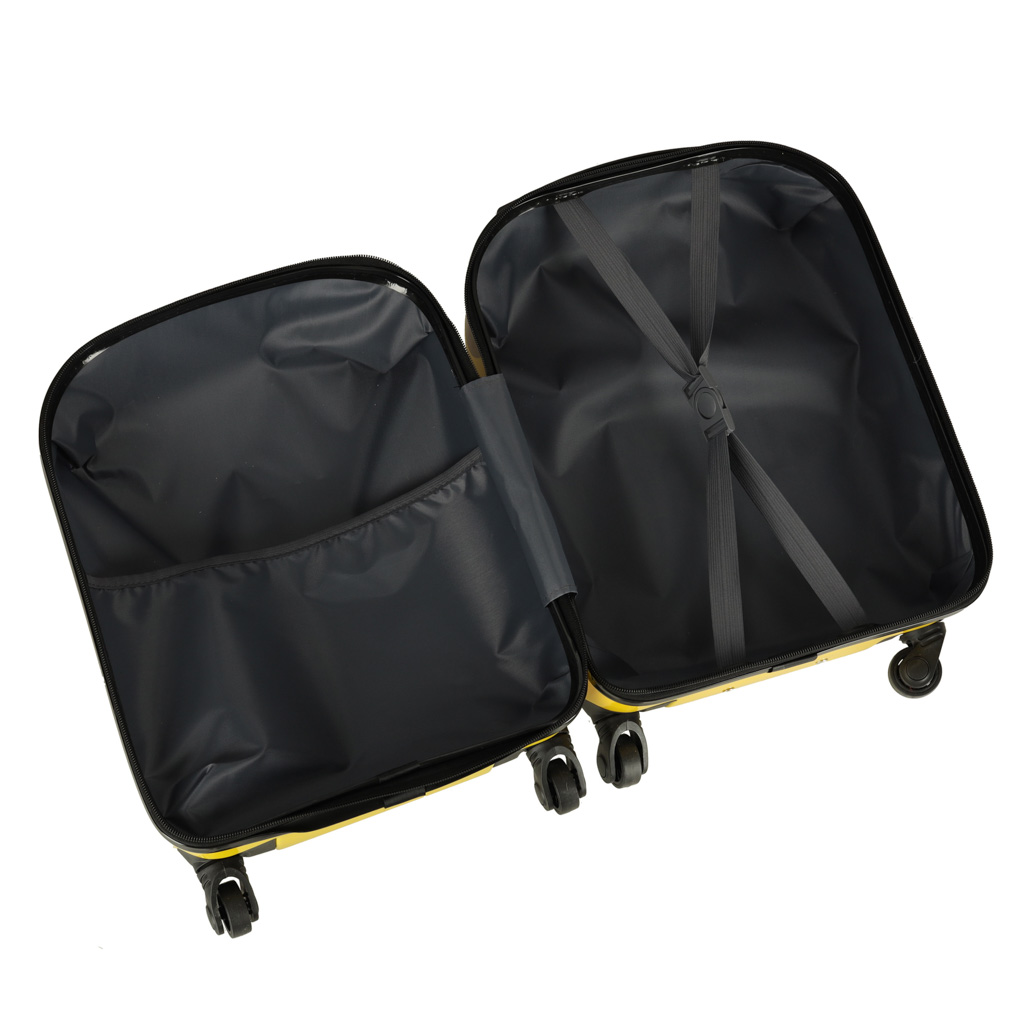 Wnętrze walizki jest przestronne i pomieści wszystkie niezbędne rzeczy na wyjazd, w tym ulubione zabawki. Dwie komory – jedna w formie kieszonki oraz druga z pasami zabezpieczającymi – zapewniają porządek i bezpieczeństwo przechowywanych przedmiotów.