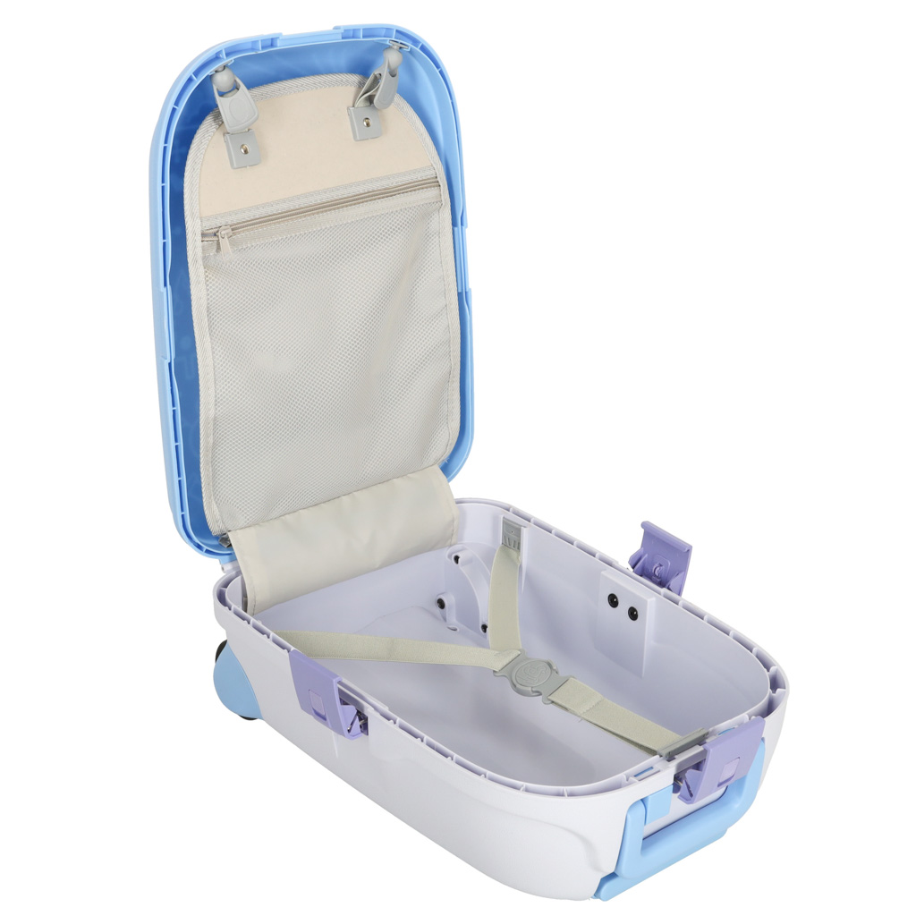 Walizka zachwyca ciekawym designem, który przyciągnie uwagę dziecka. Dzięki dodatkowym naklejkom maluchy mogą spersonalizować swój bagaż. Cała konstrukcja jest solidna, co zapewnia niezawodność podczas podróży. Spraw, aby każda wyprawa była jeszcze bardziej ekscytująca z tą wyjątkową walizką!
