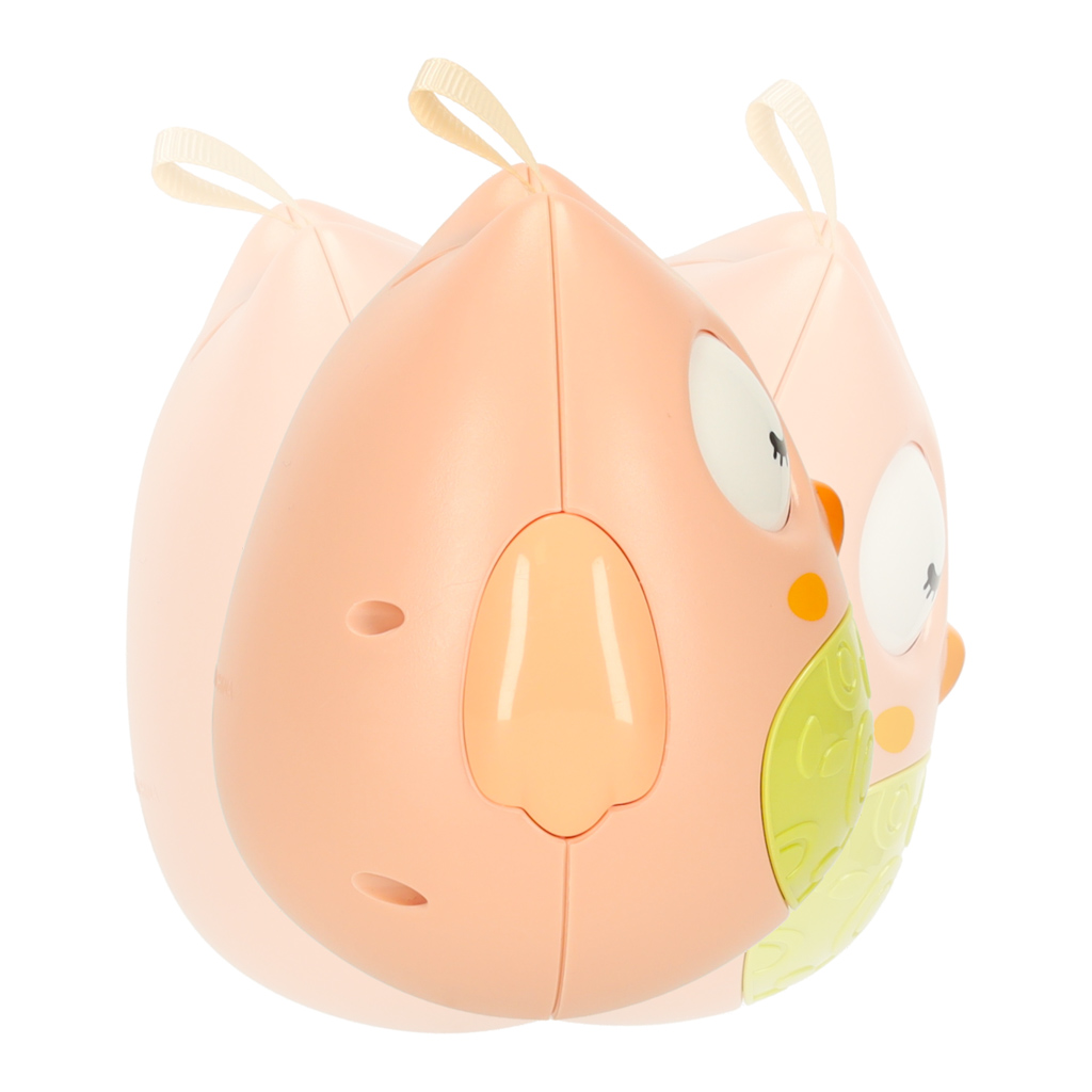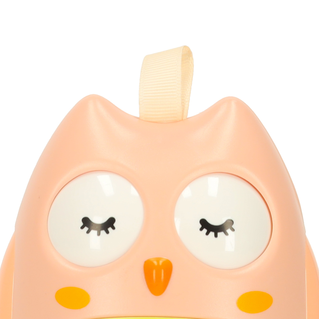 Sówka zachęca malucha do ruchu, co rozwija jego zdolności manualne. Zabawka jest bezpieczna, nie ma ostrych krawędzi ani odczepianych elementów.