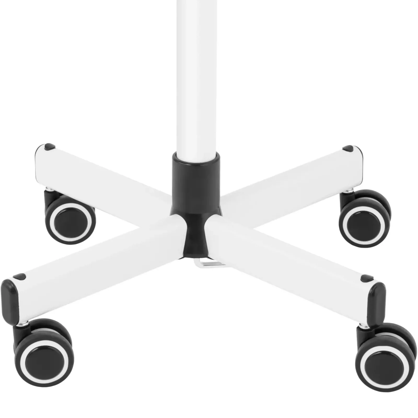 Zbiornik na wodę o pojemności 700 ml zapewnia długotrwałe użytkowanie, a po jego napełnieniu wapozon automatycznie włącza się na 30 sekund, co przyspiesza przygotowanie do zabiegu. Dodatkowo, urządzenie jest mobilne dzięki czterem płynnie obracającym się kółkom oraz regulowanej wysokości od 78 do 95 cm. Obrotowa dysza parowa i elastyczna szyjka lampy pozwalają na łatwe dostosowanie do potrzeb klienta.