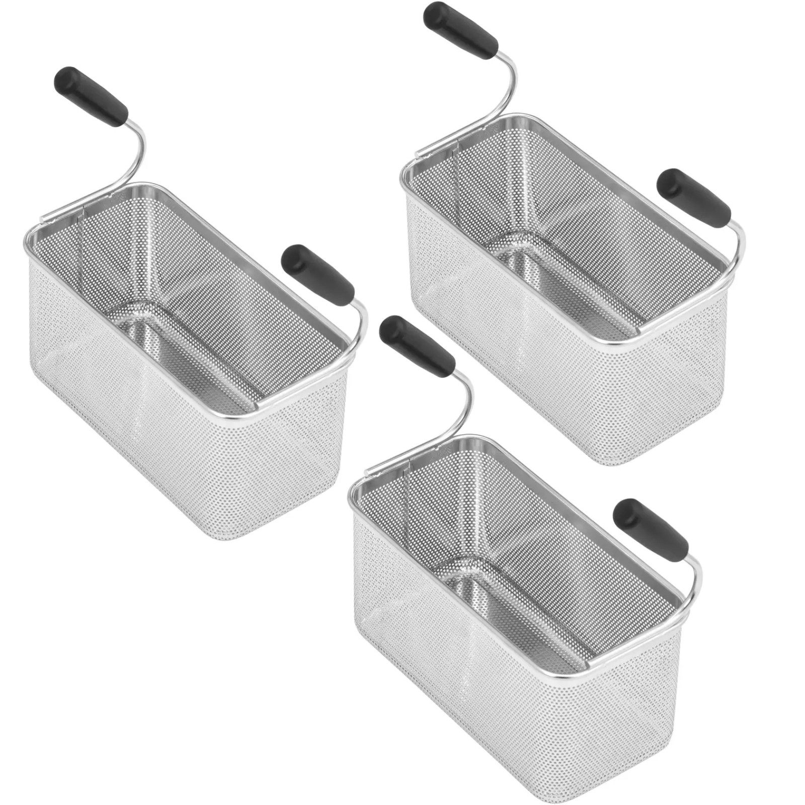 Trzy koszyki na makaron pozwalają na jednoczesne gotowanie różnych porcji, co jest niezwykle praktyczne w intensywnym środowisku kuchennym. Oznaczenie poziomu maksymalnej i minimalnej ilości wody jest wyraźne, co ułatwia kontrolę nad procesem gotowania.