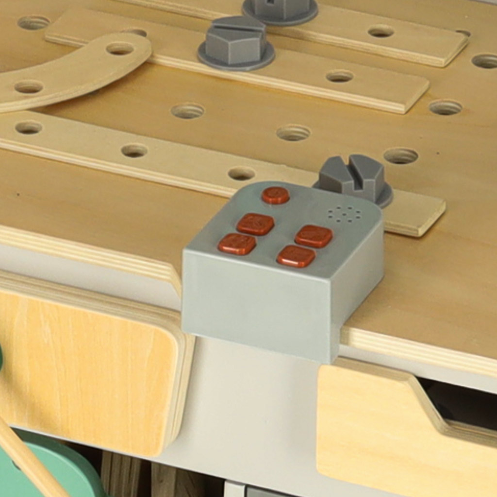 Warsztat z pilotem, który wydaje dźwięki, staje się idealnym miejscem do nauki i zabawy. Dzieci uczą się nazywać narzędzia oraz poznają zasady ich użycia. Bogaty zestaw narzędzi daje nieograniczone możliwości zabawy, co sprawia, że każda chwila spędzona z tym produktem jest pełna radości i nauki.