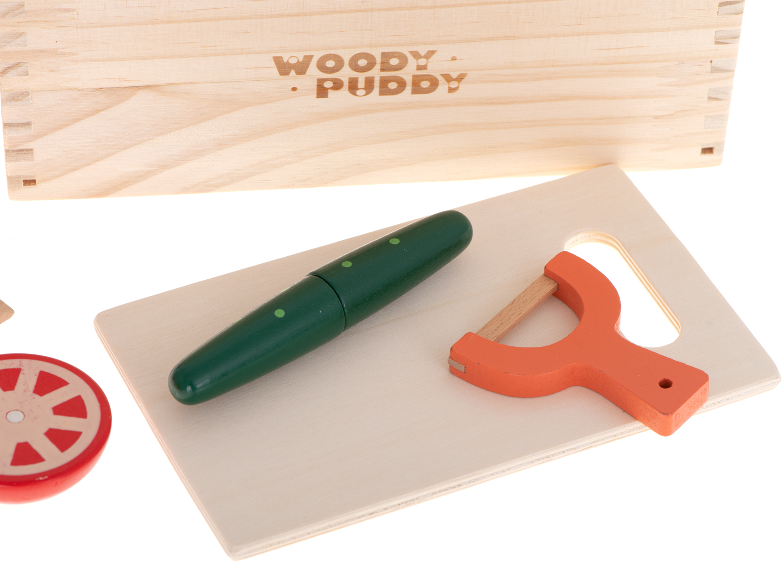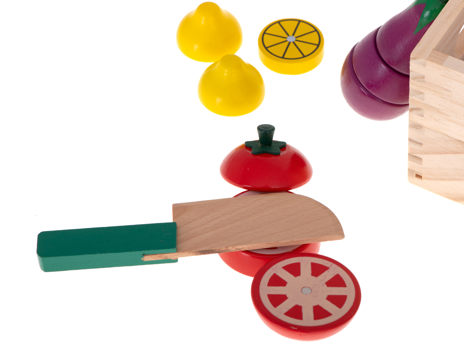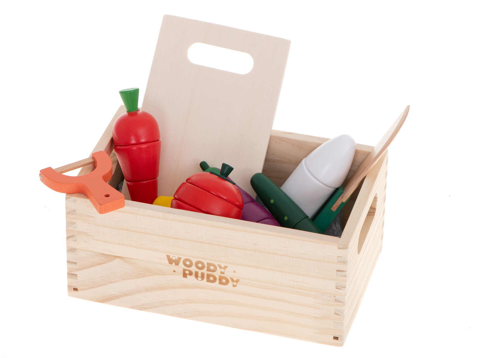 Zestaw, który zapewnia wiele radości i zabawy! Kolorowe warzywa w drewnianej skrzynce pozwolą Twojemu dziecku przygotować pyszne potrawy dla lalek i przytulanek.