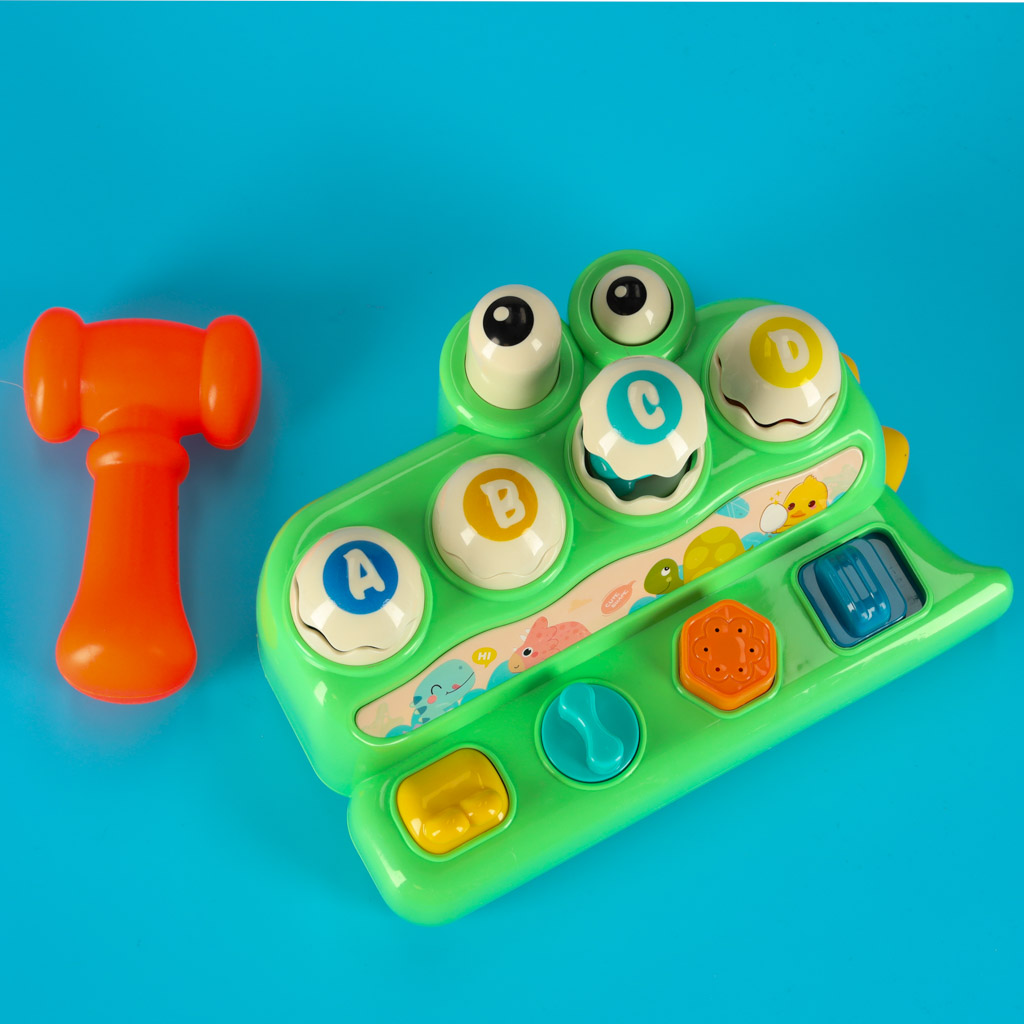 W tej grze zadaniem malucha jest przesunięcie guziczka, co powoduje wyskoczenie jajka, a następnie uderzenie go młotkiem, aby schowało się z powrotem. Dzięki temu dzieci ćwiczą swoje umiejętności motoryczne, a także uczą się cierpliwości i koncentracji.