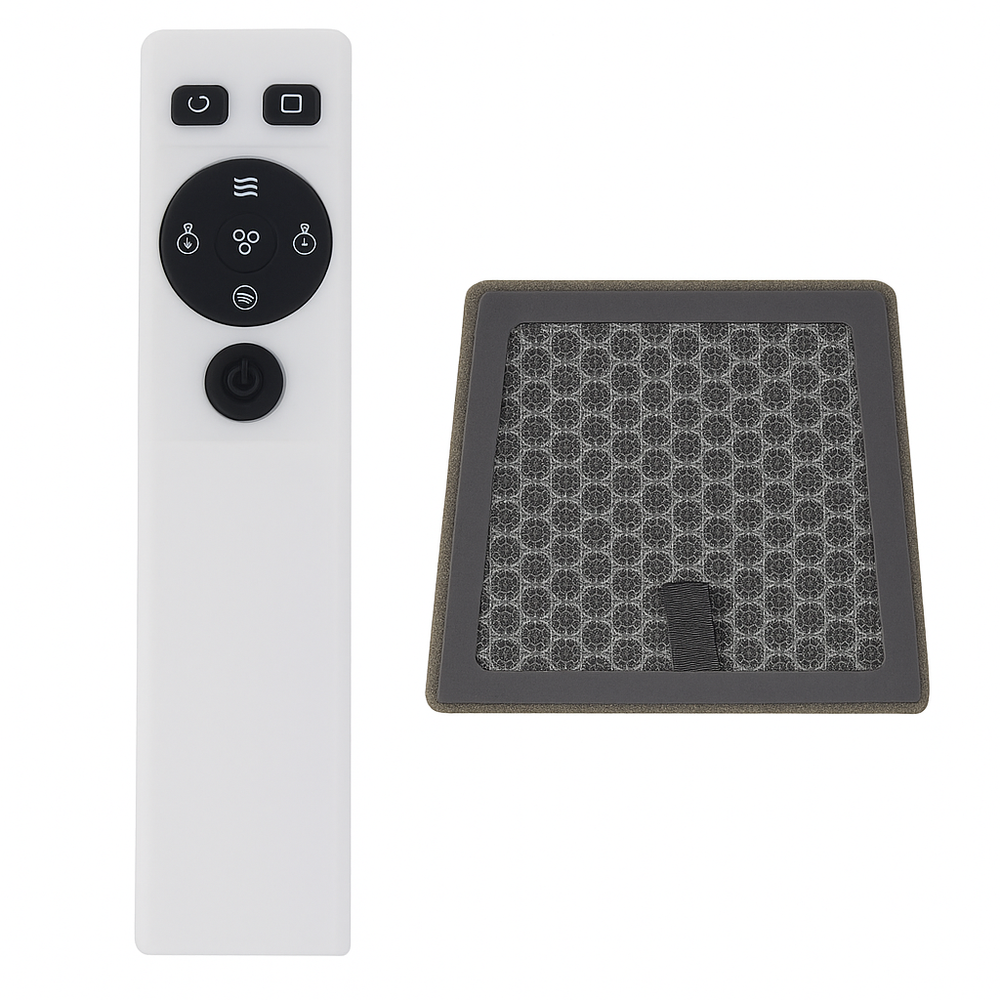 W zestawie znajduje się ergonomiczny pilot z logo LEAN, który umożliwia wygodne sterowanie urządzeniem bez konieczności podchodzenia. Wybierz tryb, włącz oscylację, ustaw timer – wszystko z poziomu kanapy.