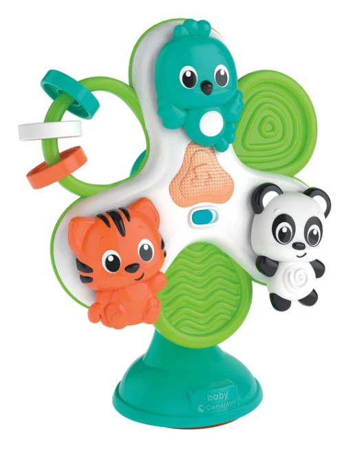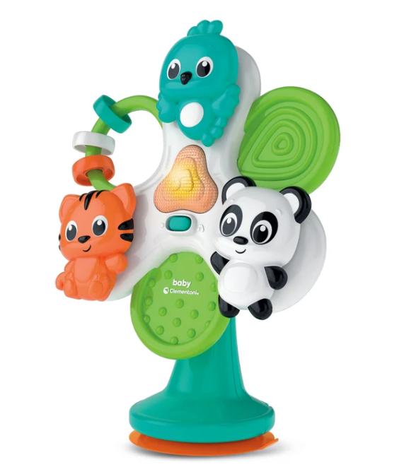 Praktyczna i prosta przyssawka pod podstawą służy do przymocowania zabawki do stolika przy krzesełku.